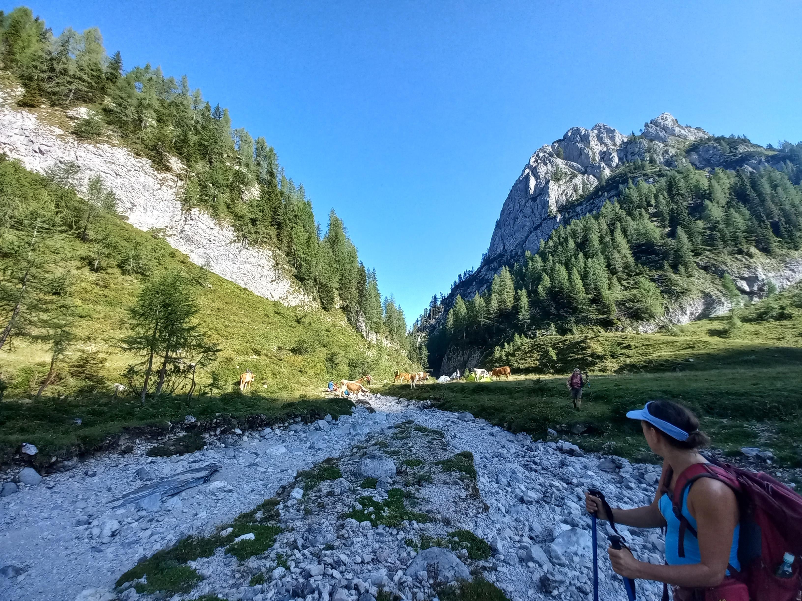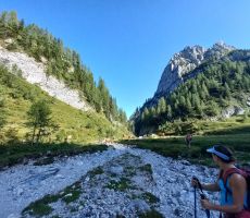 Pot navzdol je bila prijetna, pri postaji sedežnice smo se odločili, da se peš spustimo še do avta. Ustavili smo se ob rečici, si privoščili pivo, Mojčino pito in (nekateri) tudi kopanje.