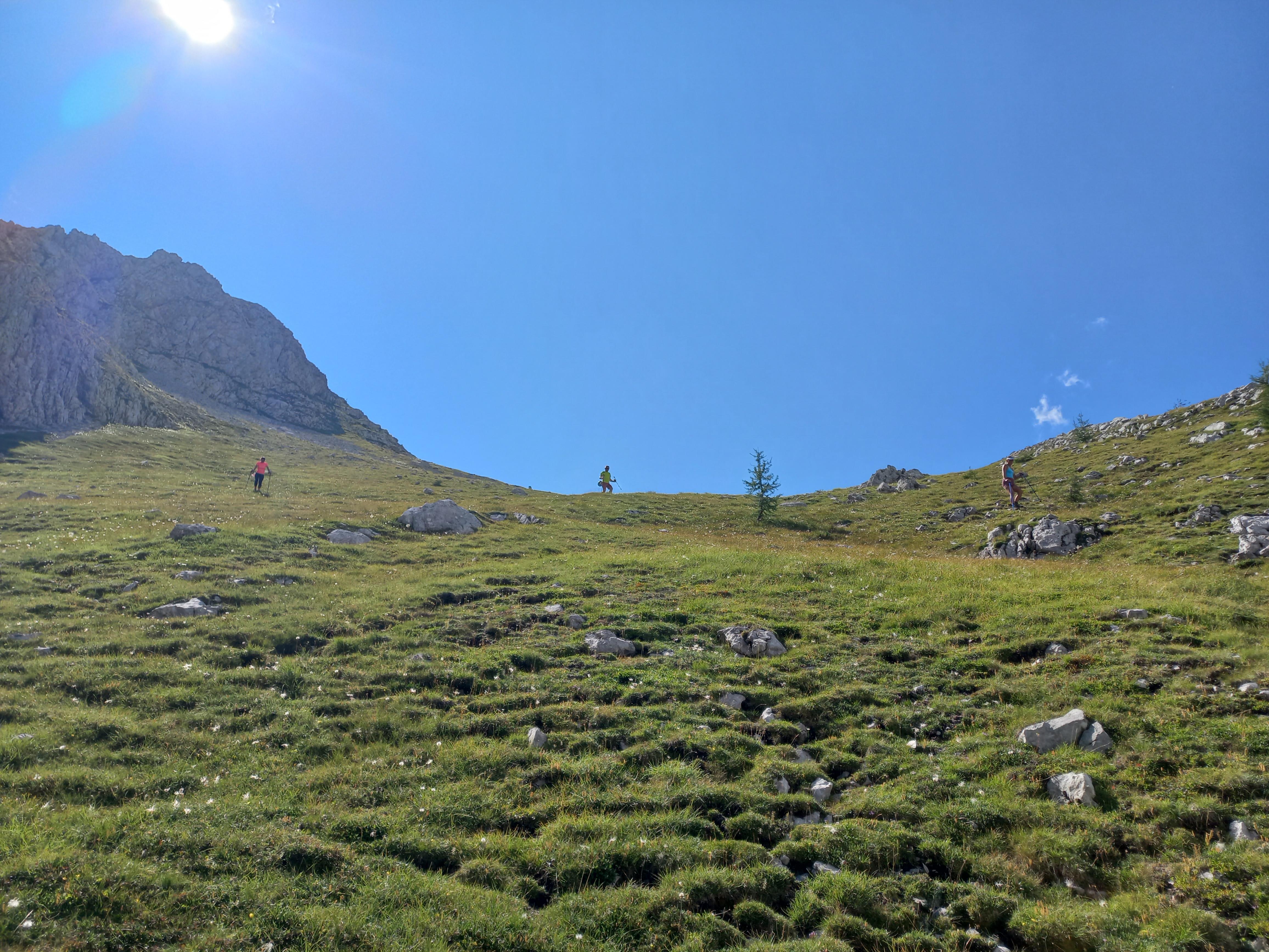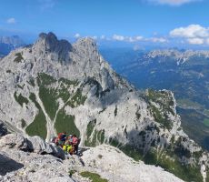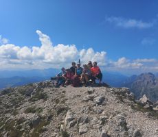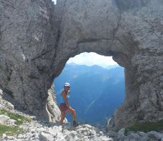 Zjutraj smo se porazdelili v 2 avta in se odpeljali v Cimo Sappada. Na izhodišču – pri sedežnici Monte Sierra, smo pričeli s hojo – kot v opisu poti. Brez težav smo v prijetnem rahlo vetrovnem vremenu dosegli vrh in pomalicali, nato pa se spustili še do naravnega okna, kjer smo so fotografirali. Dobre volje smo se povzpeli še na Creton de Tul, 2288 m, kjer smo se spočili na mehki travnati preprogi.