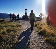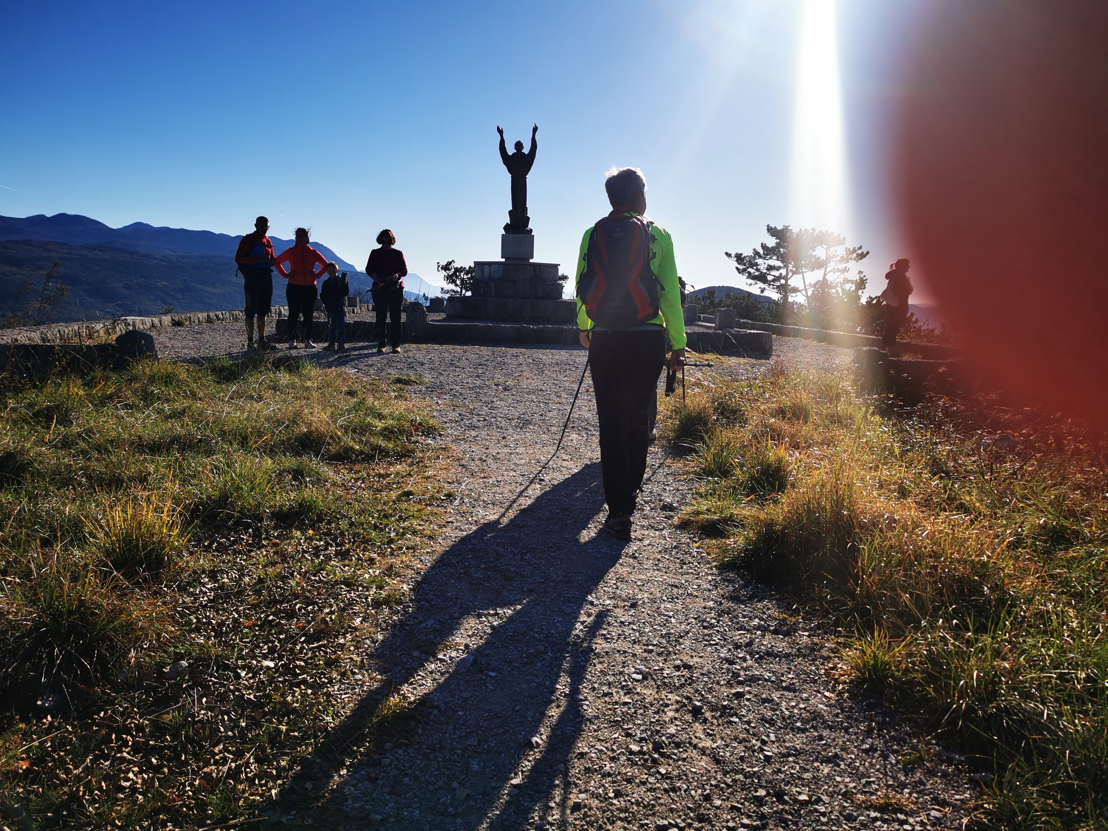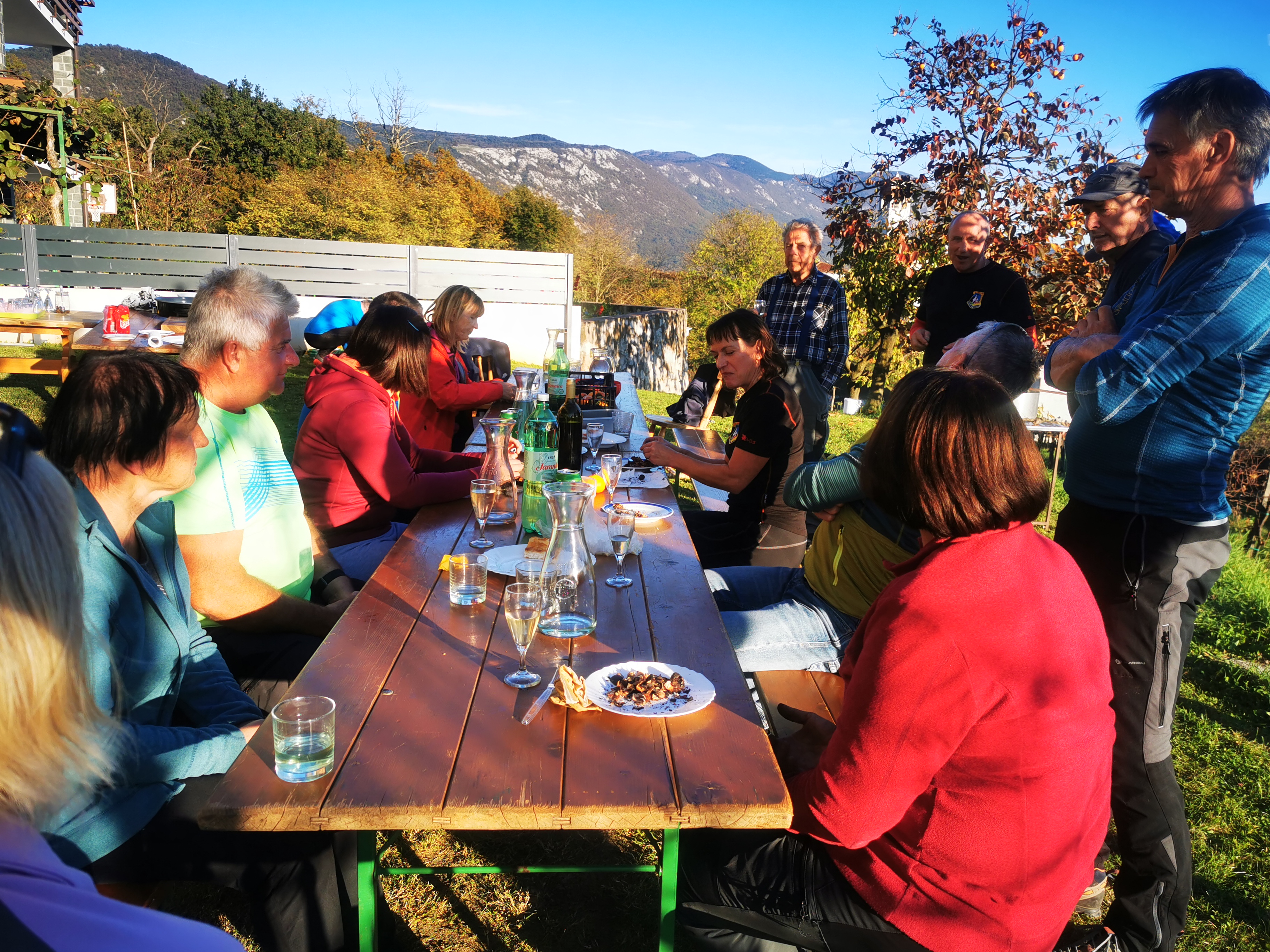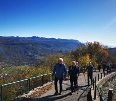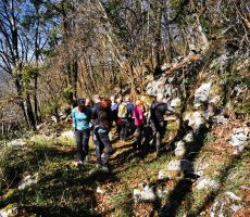 Ob 9,00 smo bili zbrani na Prevali in se odpravili najprej po rovih, nato po raznih poteh do vhoda v tunel, ki nas je pripeljal na severno stran gore. Po resnično uspešnem prehodu zahtevnega tunela, smo se ob spomeniku sv. Frančiška podružili, pogovorili, spoznali okolico sv. Gore in nato nadaljevali našo pot na Vodice. Tu smo si ogledali mavzolej in rove I. sv. vojne. K vozilom smo se vrnili po zložni, razgledni, s soncem obsijani poti, ki nam jo je svetoval Damijan.