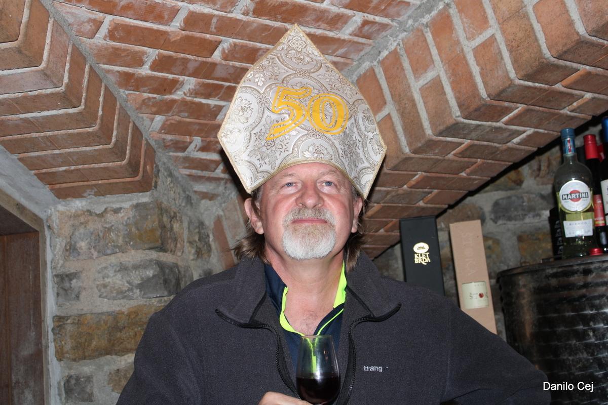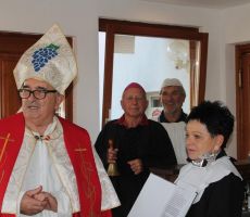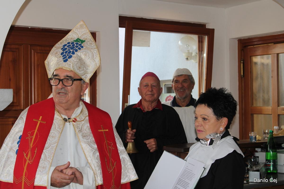 Ker pa Martinovo ne sme miniti brez krsta vina, je le to opravil vinar Ivan Urbanč na zelo izviren način. Smeha ni manjkalo.