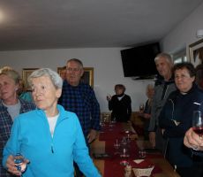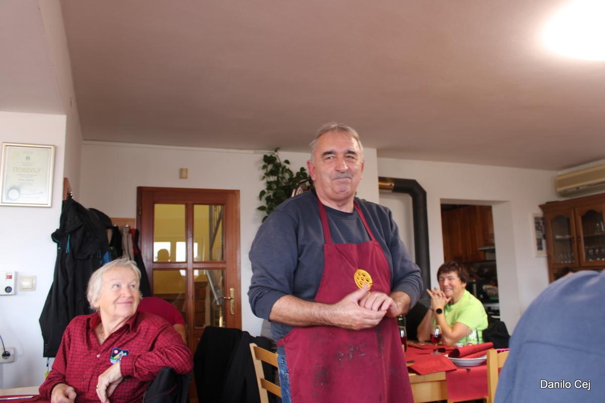 Na kmetiji nas je čakala dobrodošlica z aperitivom in z omamno dišečim, doma pečenim kruhom. Postreženi smo bili s tradicionalnim martinovim kosilom in sladico. K temu je seveda sodil slovenski posebnež - cviček, ki je prav v Gadovi peči najboljši.