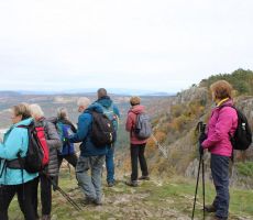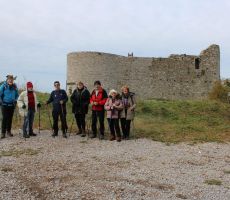 Tokrat nas je pot vodila po delu Kraškega roba in sicer od Socerba do Črnega Kala. Kraški rob je del pokrajine, kjer se kraška pokrajina prevesi v Istro. Avtobus nas je zapeljal do gradu Socerb, ki se nahaja na visokem skalnem robu, kjer smo izstopili in prvi razgledi na Trst in nekoliko bolj oddaljen Koper, so se že ponujali. Naredili smo skupinsko sliko in pot nadaljevali proti Črnemu Kalu.