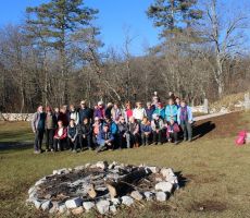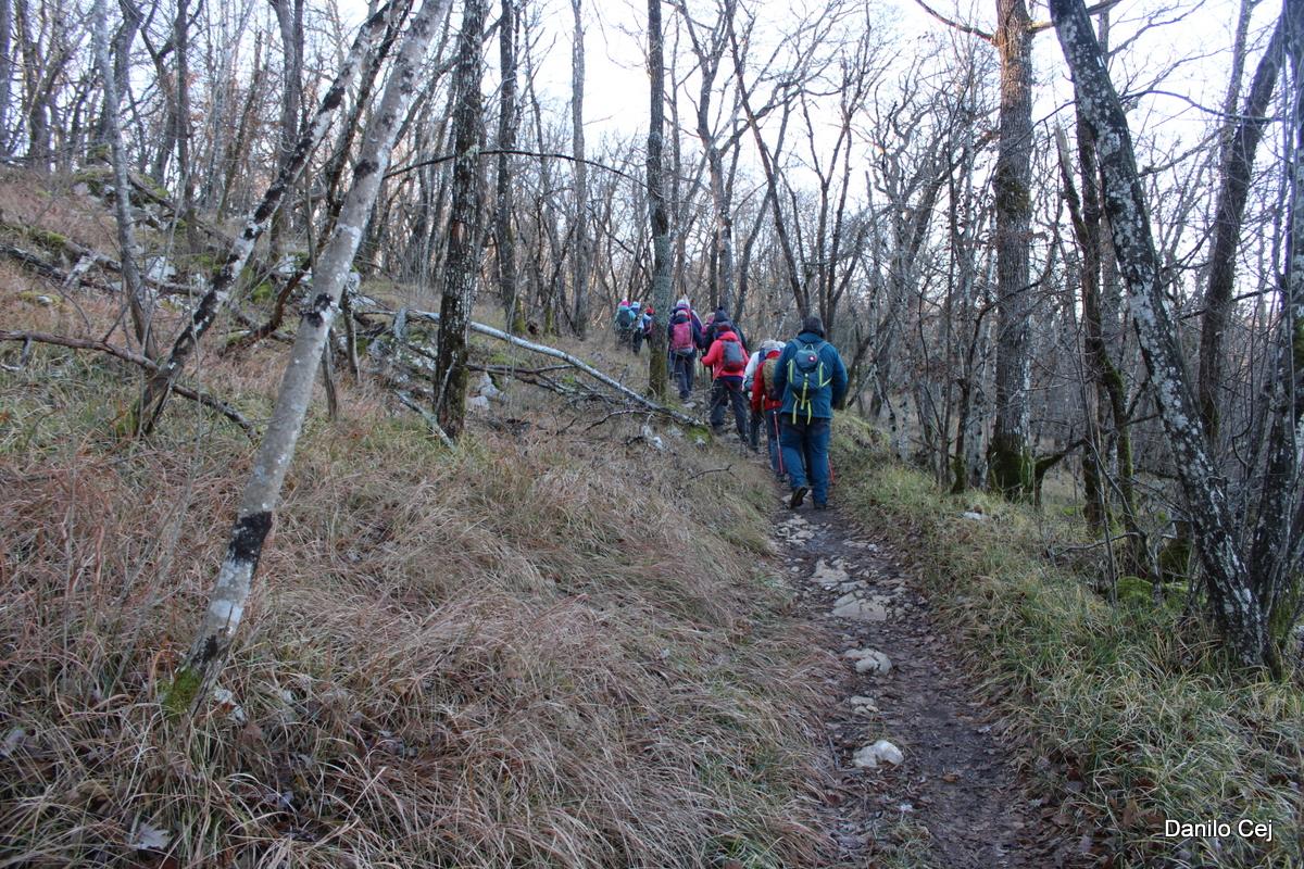 Podali smo se po Krasoslovni naravoslovni učni poti Divaški Kras, ki vodi okoli udornice Risnik z visokimi prepadnimi stenami. Le-ta je nastala z vdrtjem stropa nekdanje kraške jame. Pot je opremljena z informativnimi in usmerjevalnimi tablami, ki razlagajo kraške pojave, drevesne vrste in druge posebnosti kraškega gozda. Dolga je približno pet kilometrov in je krožna. Opravili smo jo zlahka in se krožno vrnili na izhodišče.
