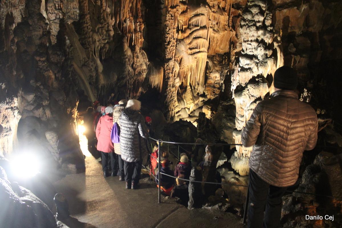 V nadaljevanju smo se odpeljali do vstopa v Divaško jamo, počakali lokalnega vodiča po jami in se po strmih stopnicah v jamo tudi spustili. Že v prvi dvorani jama predstavlja razkošje lepote in miru. Ob poti v naslednjo dvorano smo lahko občudovali čudovite kapnike in umetnine iz sige, kot so kope, ciprese, zavese in sveče raznih barv in oblik. Jamo je odkril vaški posebnež, Gregor Žiberna leta 1884. Le nekaj let potem je bila preurejena za turistične obiske. Med znanimi osebnostmi, ki so v tem času obiskali jamo sta bila princ Rudolf – sin cesarja Franca Jožefa in znani psihoanalitik Sigmund Freud. Divaška jama je dolga 700 m, 500 m je urejenih za turistični ogled. Pri ogledu se spustimo do globine 50 m.