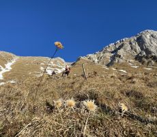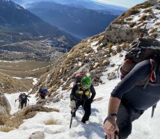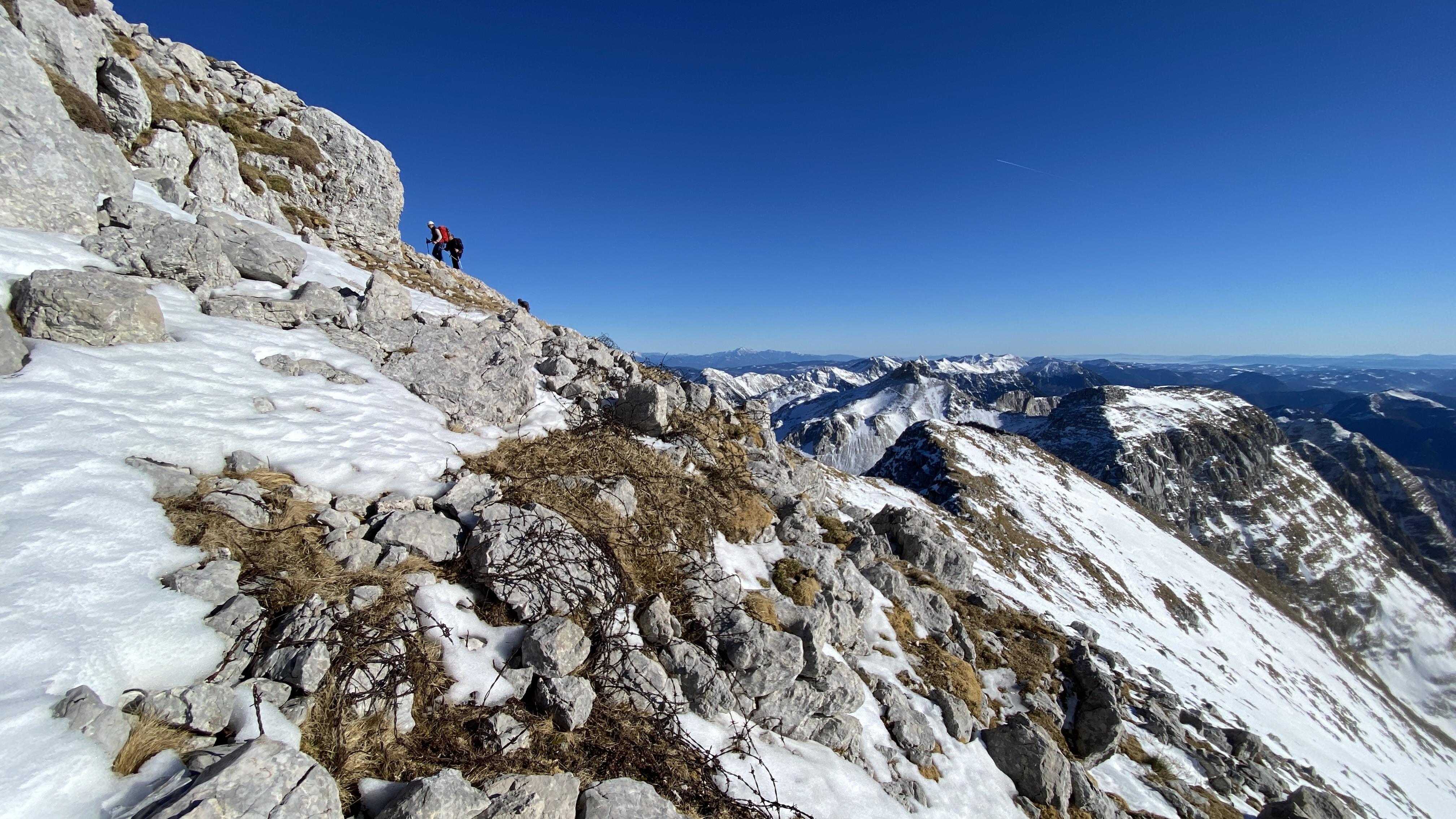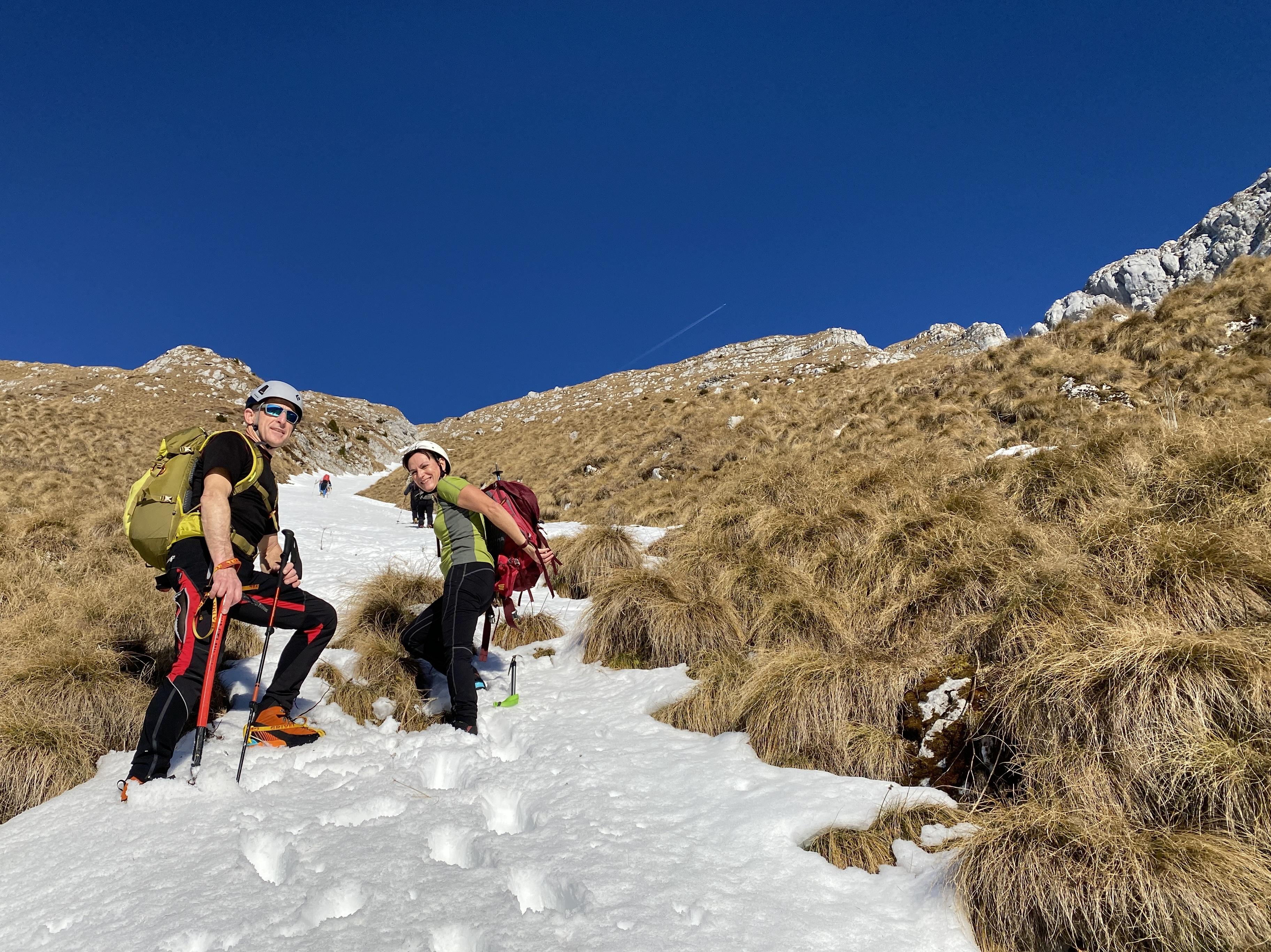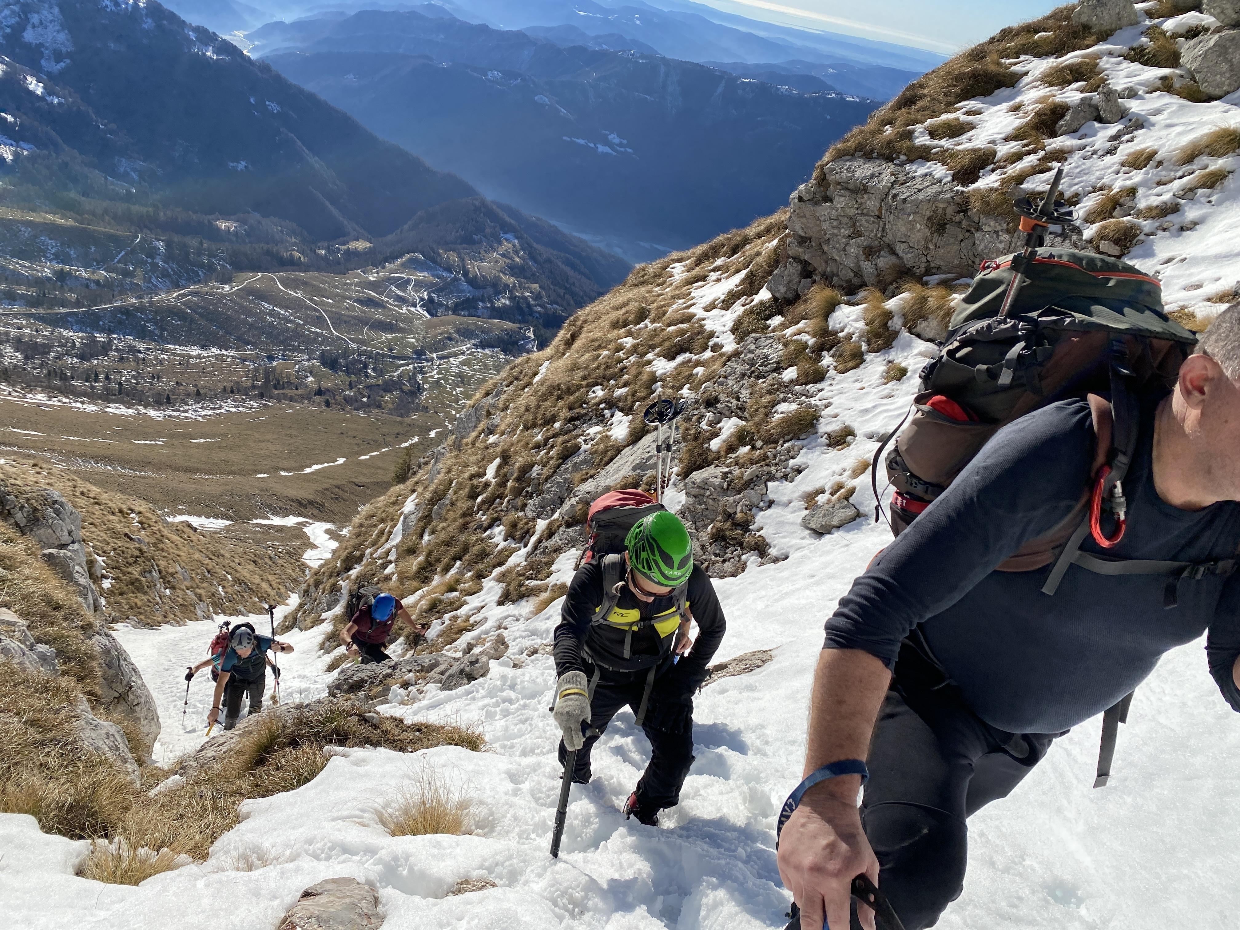 Ob 7. smo se odpeljali iz Solkana do planine Kuhinja in presenečeno opazili, da skoraj ni snega. Po krajši razpravi smo se odločili, da gremo vsi v centralno grapo, ki je imela ravno dovolj snega za varen in lažji vzpon. Na vrh smo prišli nekaj po 12. uri. Za povratek smo se razdelili. Štirje smo se spustili po sosednji grapi, ostali pa po normali poti. Na parkingu smo se še veselo podružili ob dobri kapljici, klobasah in pecivu.