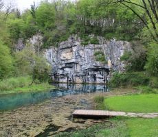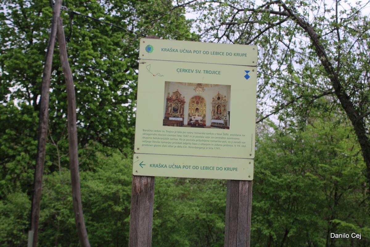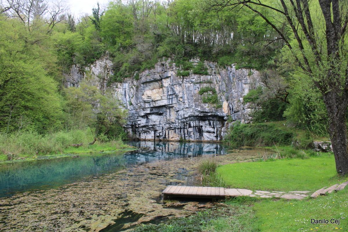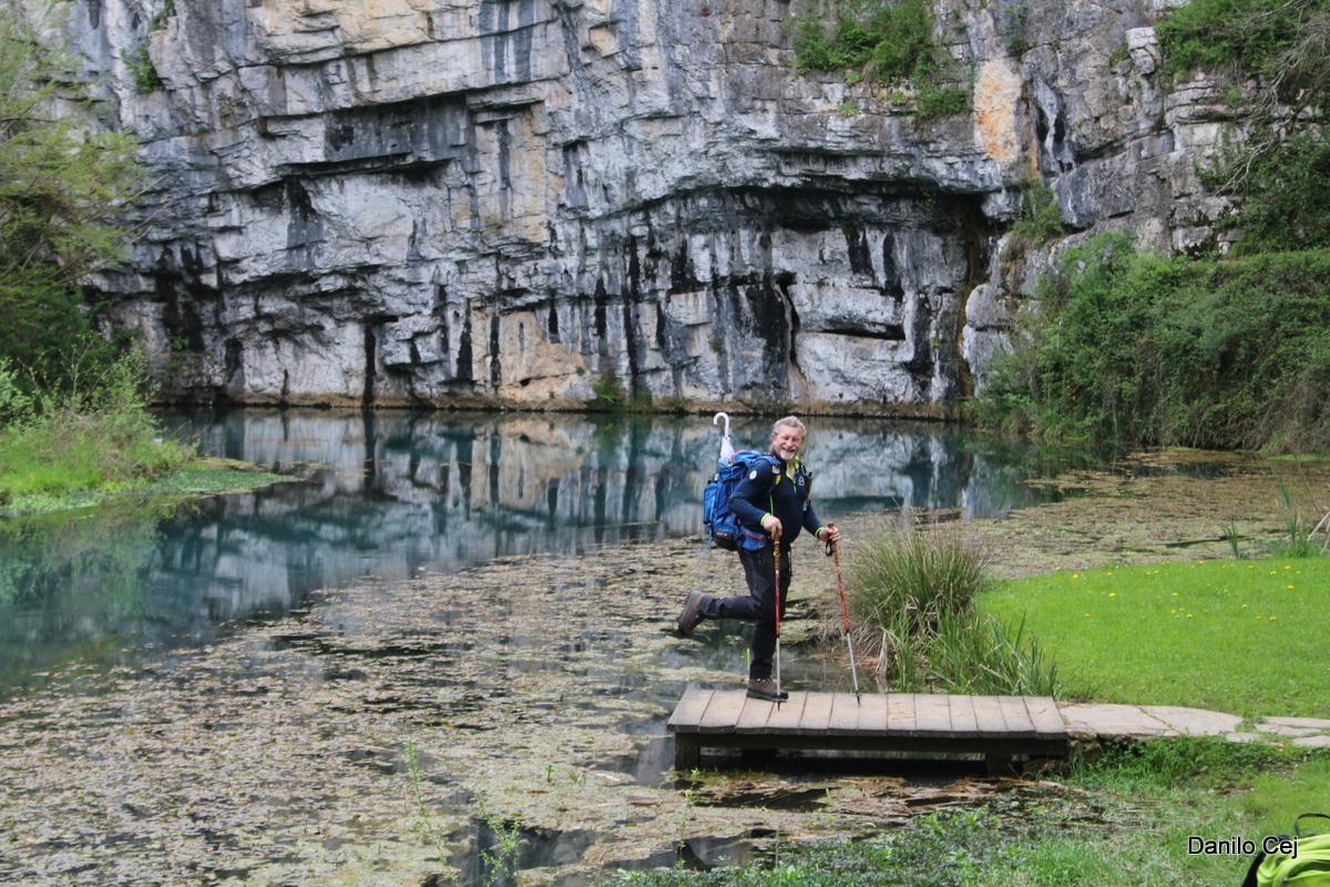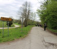 Še nekaj korakov, pogled na oddajnik v daljavi na Trdinovem vrhu in že smo bili na robu vasi Krupa. Še spust po klančini in smo že bili pri prekrasnem izviru reke Krupe. V mirni vodi se je jasno videl odsev skal, ki so se strmo dvigale nad vodo. Nekoliko nižje je bil širok slap, ki je enakomerno šumel. Izpod mlina se je slišala nenavadna glasba – voda je očitno pljuskala v nekakšno vdolbino pod zgradbo in ustvarjala nenavaden in tako značilen zvok, ki ga lahko slišimo le v globokih jamah. Prebujajoča narava je bila vsa v zelenem. Bogata in sveža tako, da je rdeče srce, ki z napisom »Izvir reku Krupe«, še kako prišlo do izraza. Vodnik je pohodnikom privoščil le kratek postanek.