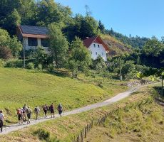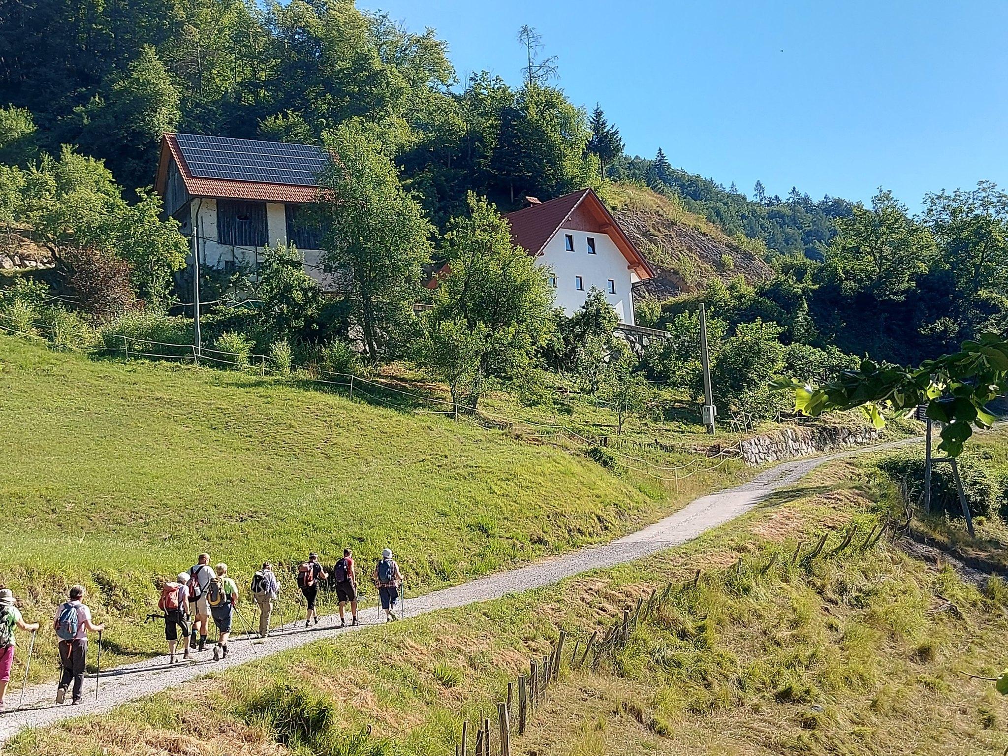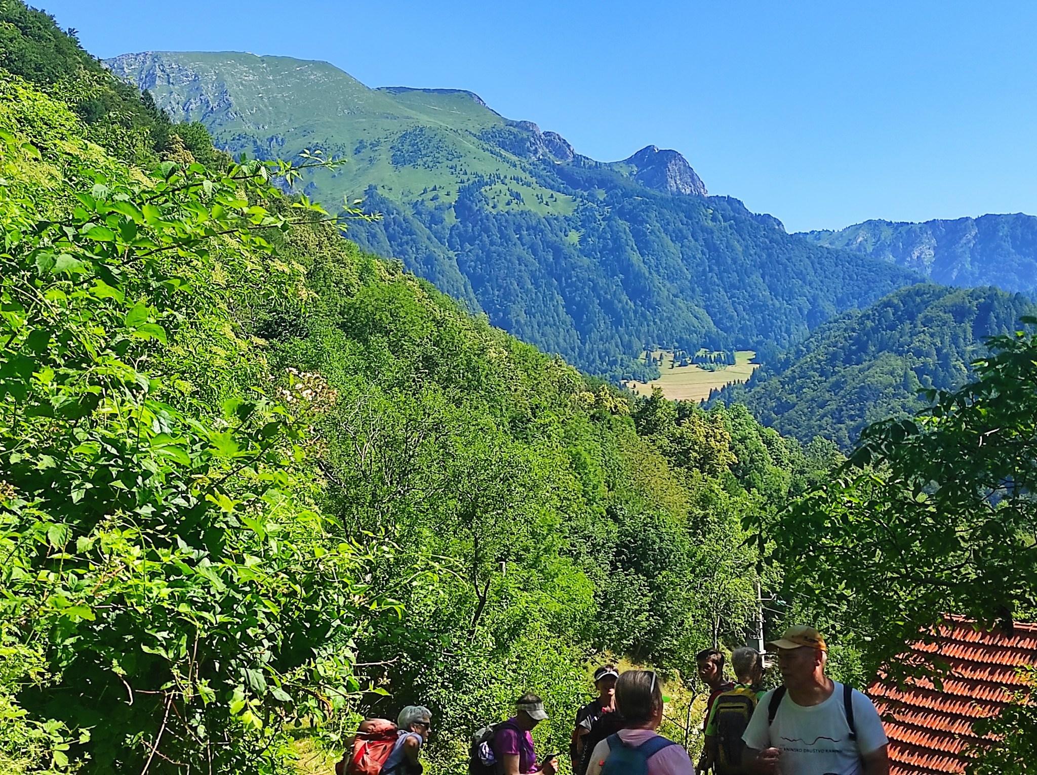 V že kar toplem in sončnem nedeljskem jutru smo se zbrali na postajališču v Hudajužni, kjer smo si privoščili tudi prvo jutranjo kavo. Obetal se nam je topel dan, zato smo se kar hitro odpravili na pot proti vasi Obloke.