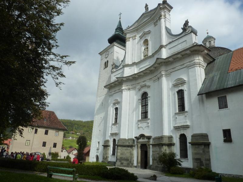 Spustimo se v Gornji grad, kjer je klima popolnoma drugačna. Obsijejo nas topli sončni žarki in že stojimo na dvorišču nekdanjega prvega benediktinskega samostana na Slovenskem, ki je bil zgrajen že l.1140. Kasneje je bil v Gornjem gradu sedež škofov. Leta 1742 je bil za ljubljanskega škofa izvoljen Andrej Atems. Prvotni samostan je skoraj v celoti podrl in v desetih letih zgradil po svojem okusu letno rezidenco. Gradnja cerkve Sv. Mohorja in Fortunata je primer avstrijskega baroka. Oltarna slika so delo M. J. Kremser-Schmidta in P. Kunla. Na vhodnem delu notranjih sten so vzidani nagrobniki iz 16. In 17. stoletja.