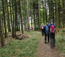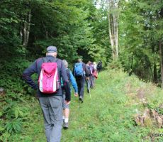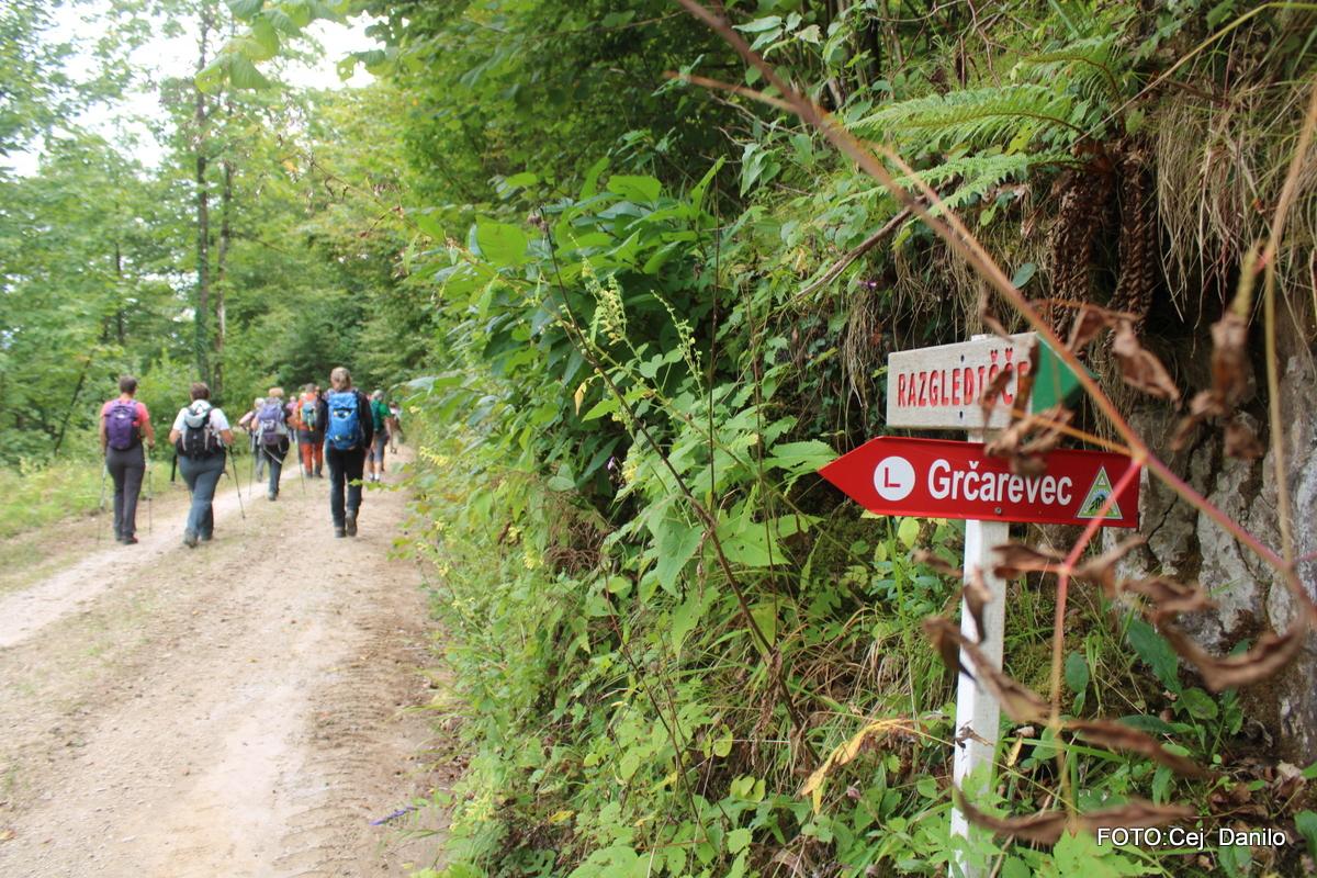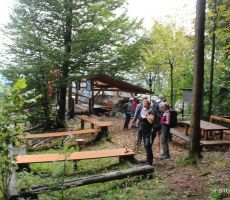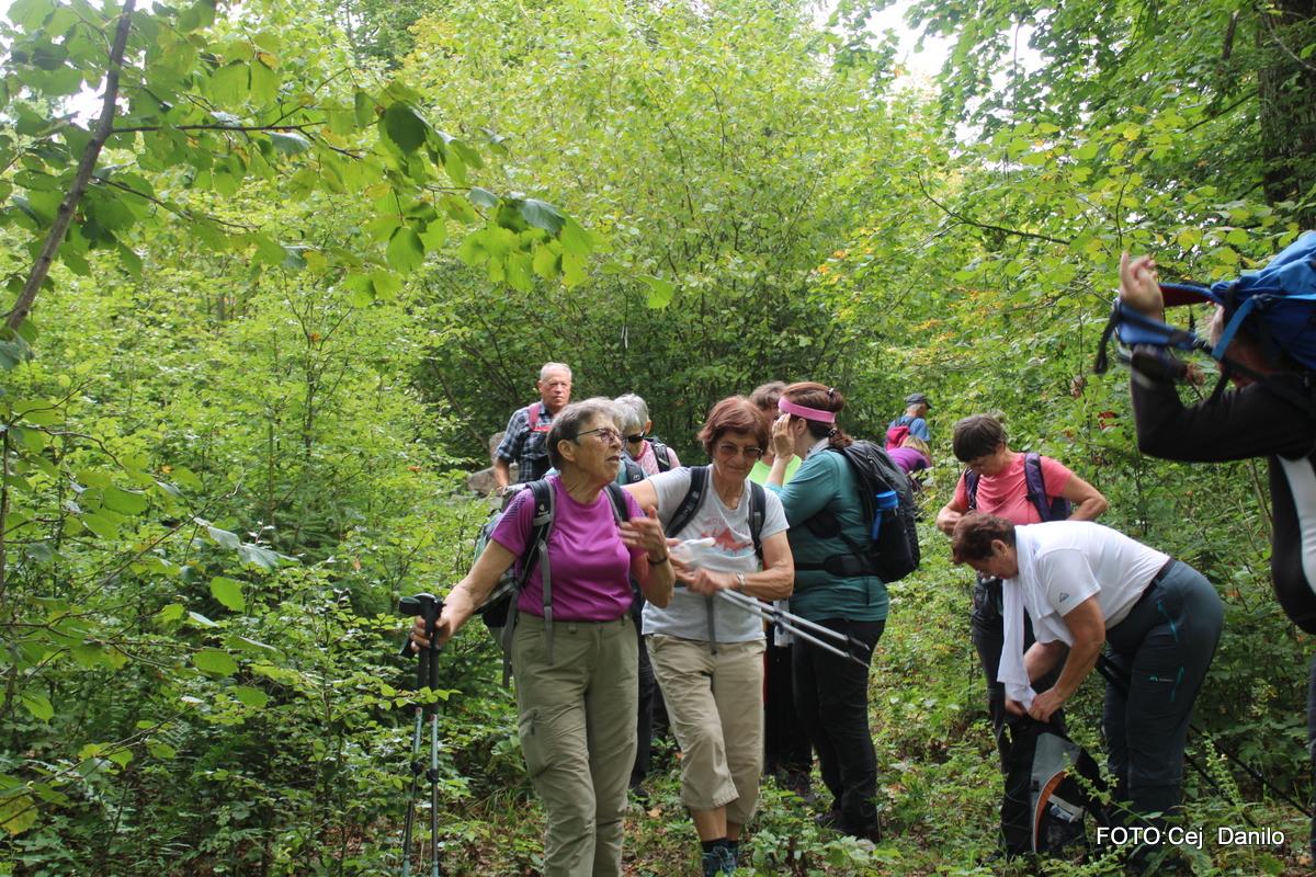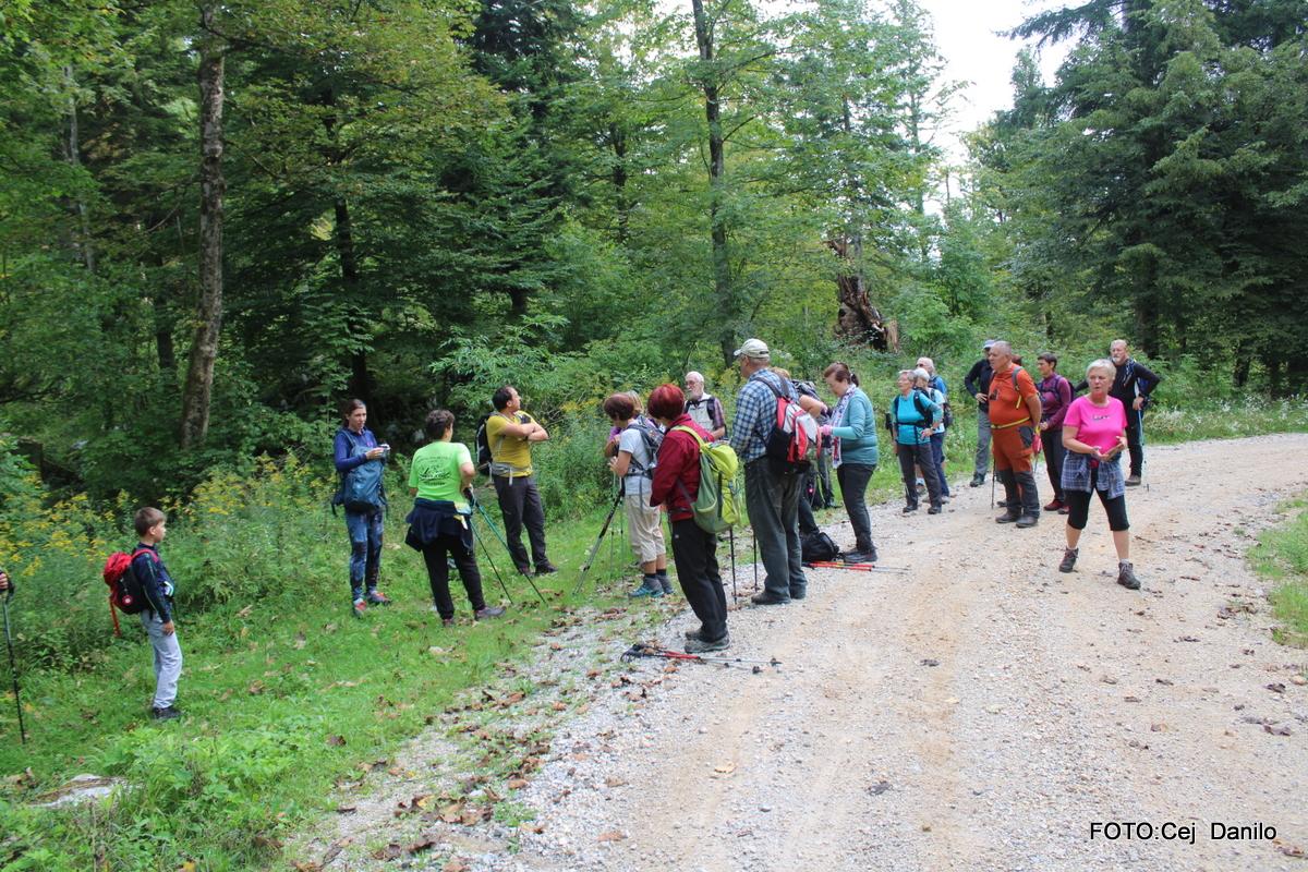 Vračali smo se v smeri Grčarevca. Iz Srnjaka smo se spustili na široko makadamsko pot in po uri in pol hoje smo prispeli do našega avtobusa, ki nas je odpeljal na obaro in žgance v gostišče Turk v Hotedršici.
