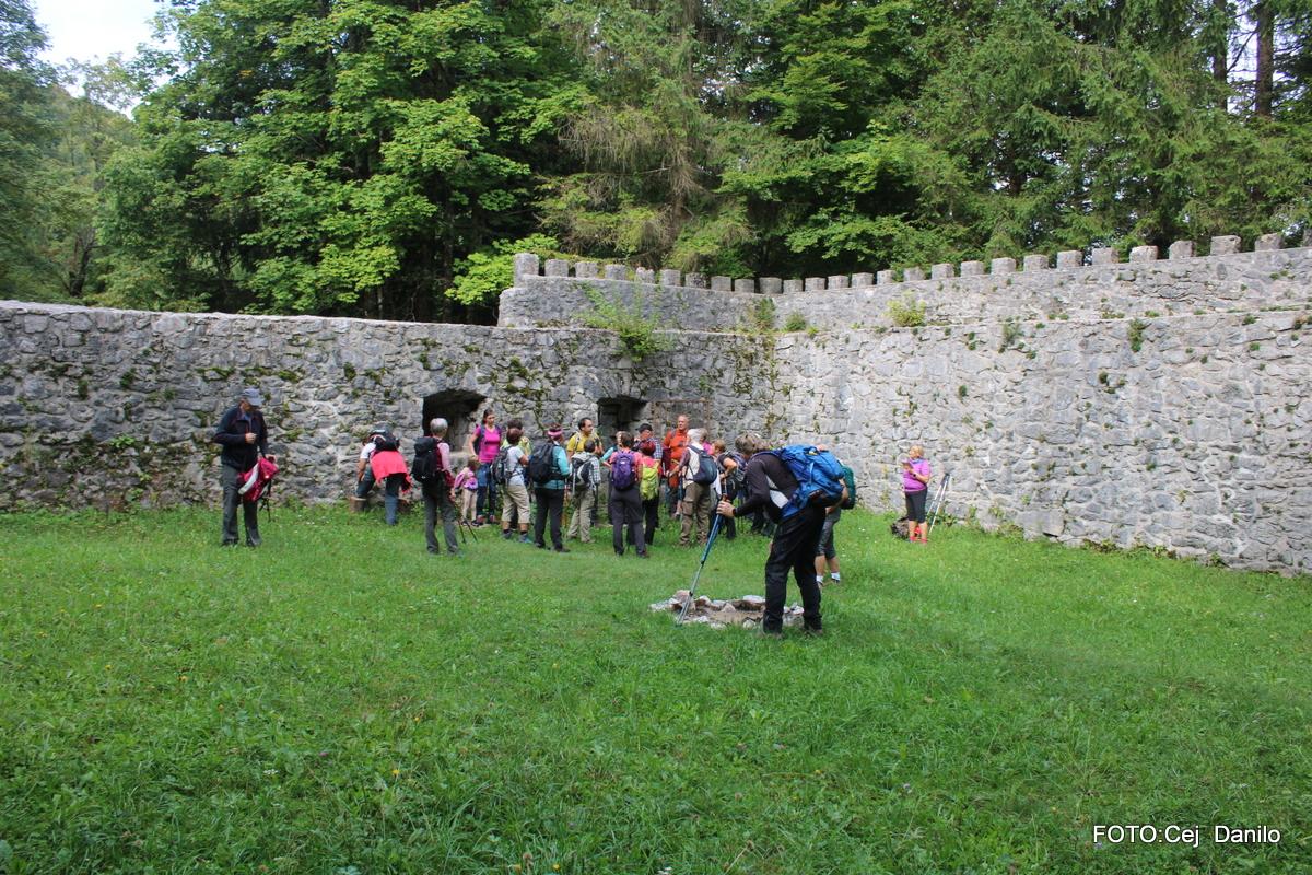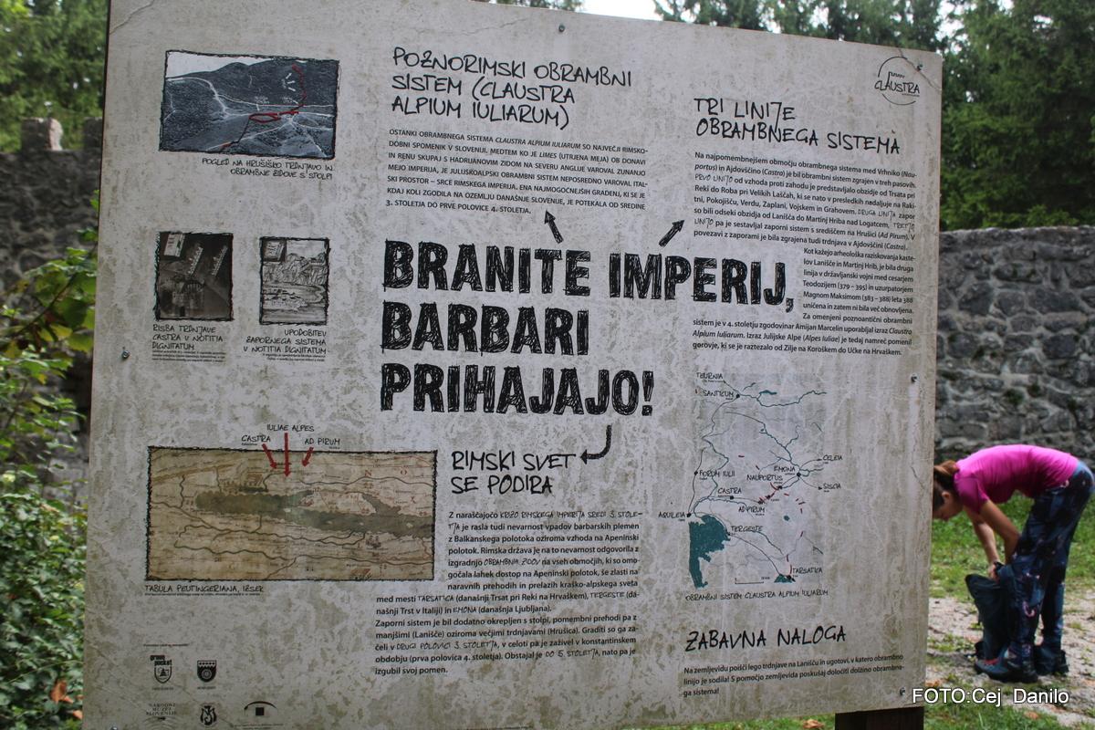 S hojo smo pričeli v naselju Kalce. Pot nas je vodila po zmerno strmem terenu – deloma po gozdu, deloma po makadamski poti. Ob glasnem klepetu in opazovanju narave ter ob spremljanju smernih oznak, nas je pot pripeljala do rekonstruirane poznorimske trdnjave iz 4. stoletja našega štetja. Le-ta se nahaja nad zaselkom Lanišče. Utrdba je bila del zapornega sistema Claustra Alpium, ki je varoval rimsko cesto Aquileia – Emona. Ob obzidju so postavljene informacijske table z razlago nastanka trdnjave in z velikim napisom »BRANITE IMPERIJ, BARBARI PRIHAJAJO!«