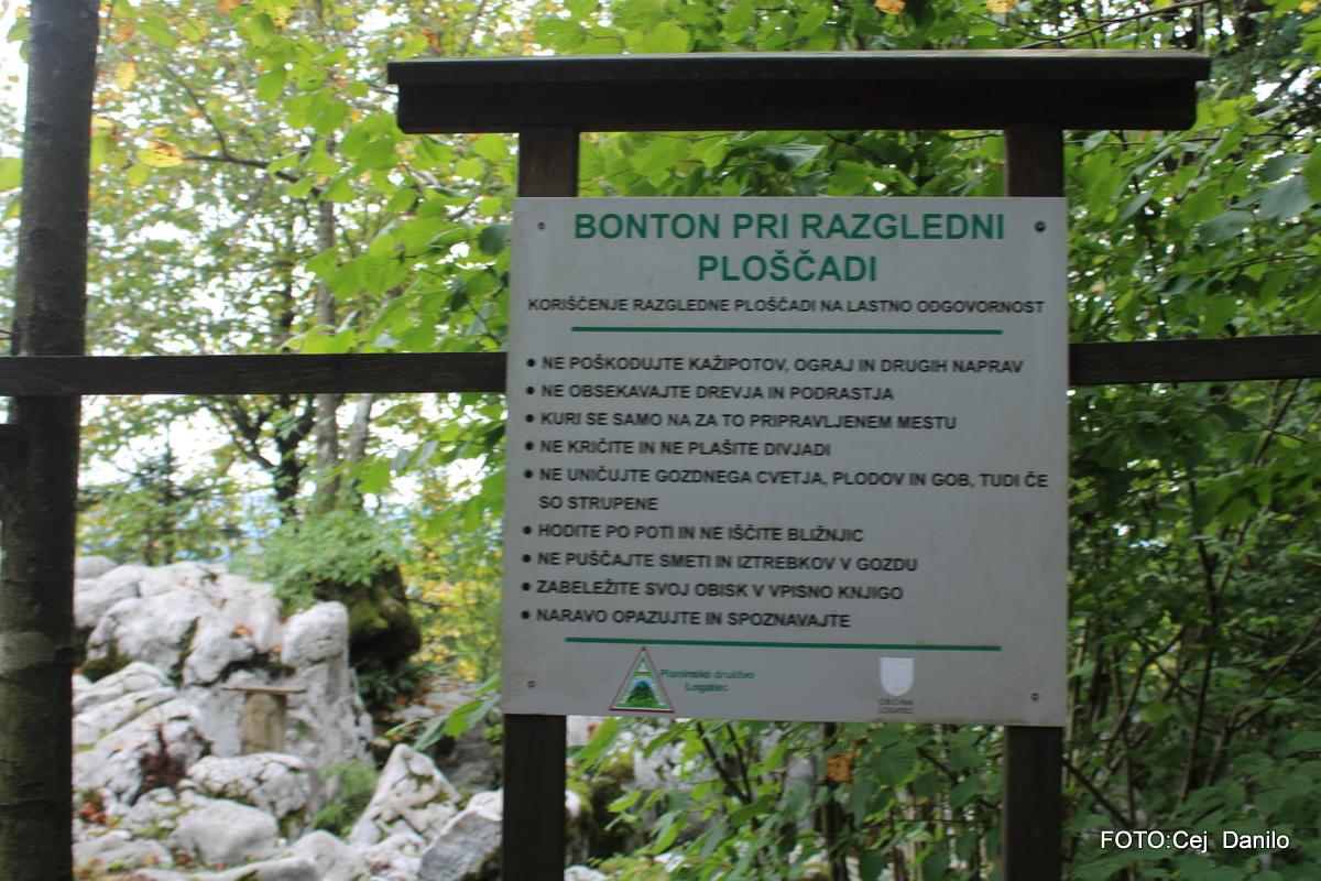 Po krajšem počitku in ogledu trdnjave, za katero nam je podal razlago naš vodič Matjaž Sušnik, smo pot nadaljevali proti razgledišču, ki stoji le 119 višinskih metrov pod vrhom Srnjaka. Razgledna ploščad pod Srnjakom je lepo urejena, saj je bila prenovljena le nekaj let nazaj. Iz ploščadi se nam odpre lep razgled na Logatec in okoliške zaselke, ob dobri vidljivosti pa naj bi razgled segel do Ljubljane in vse do Alp.