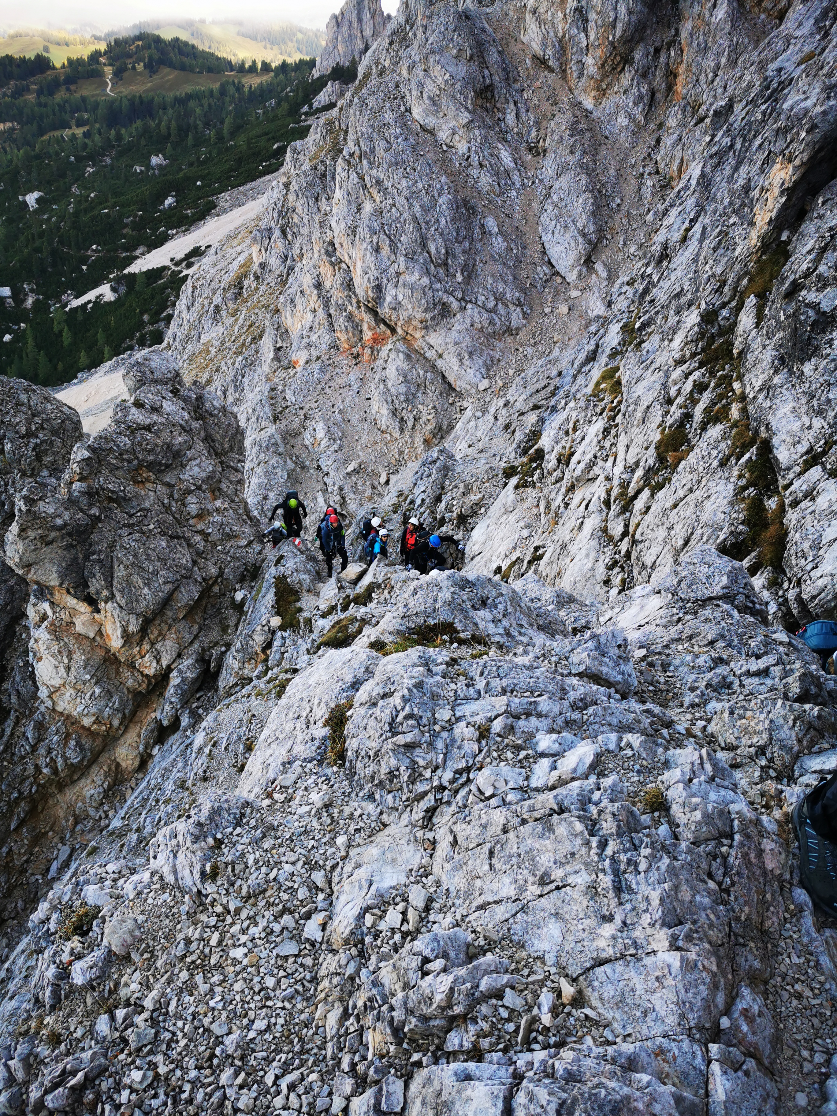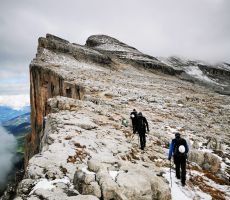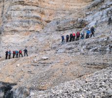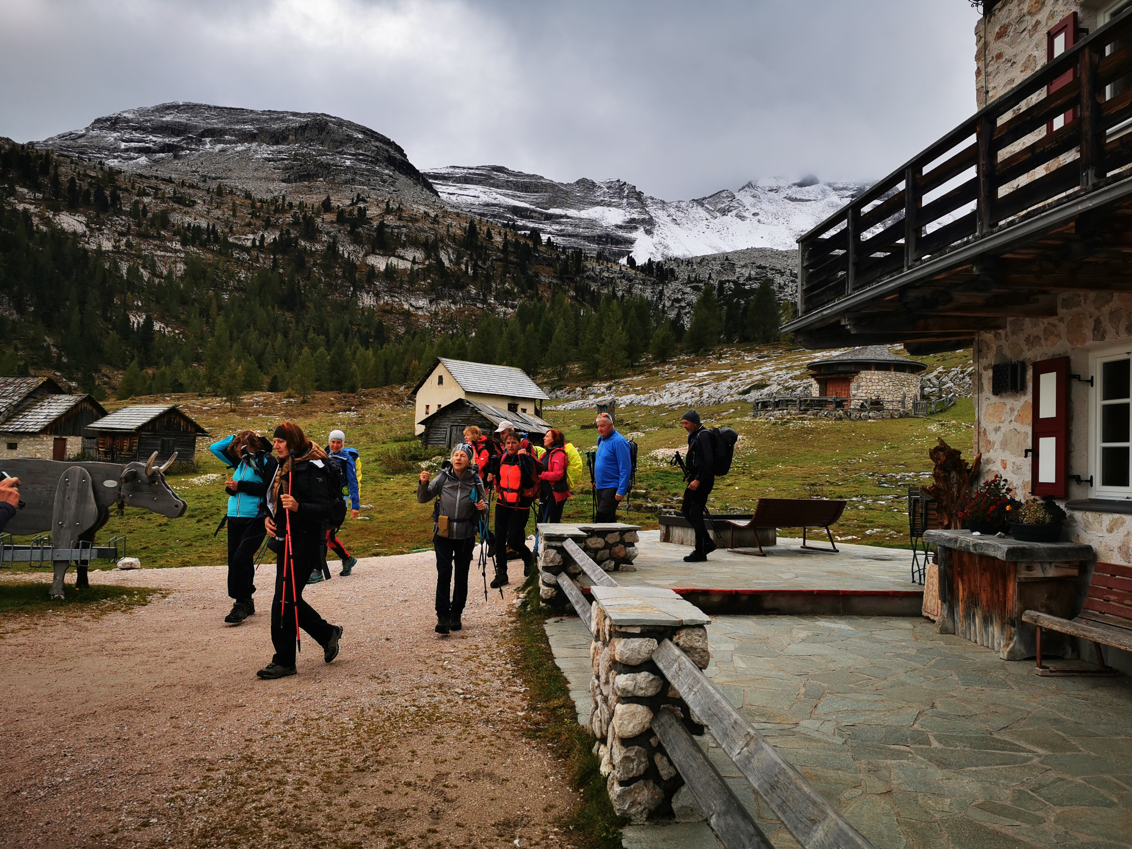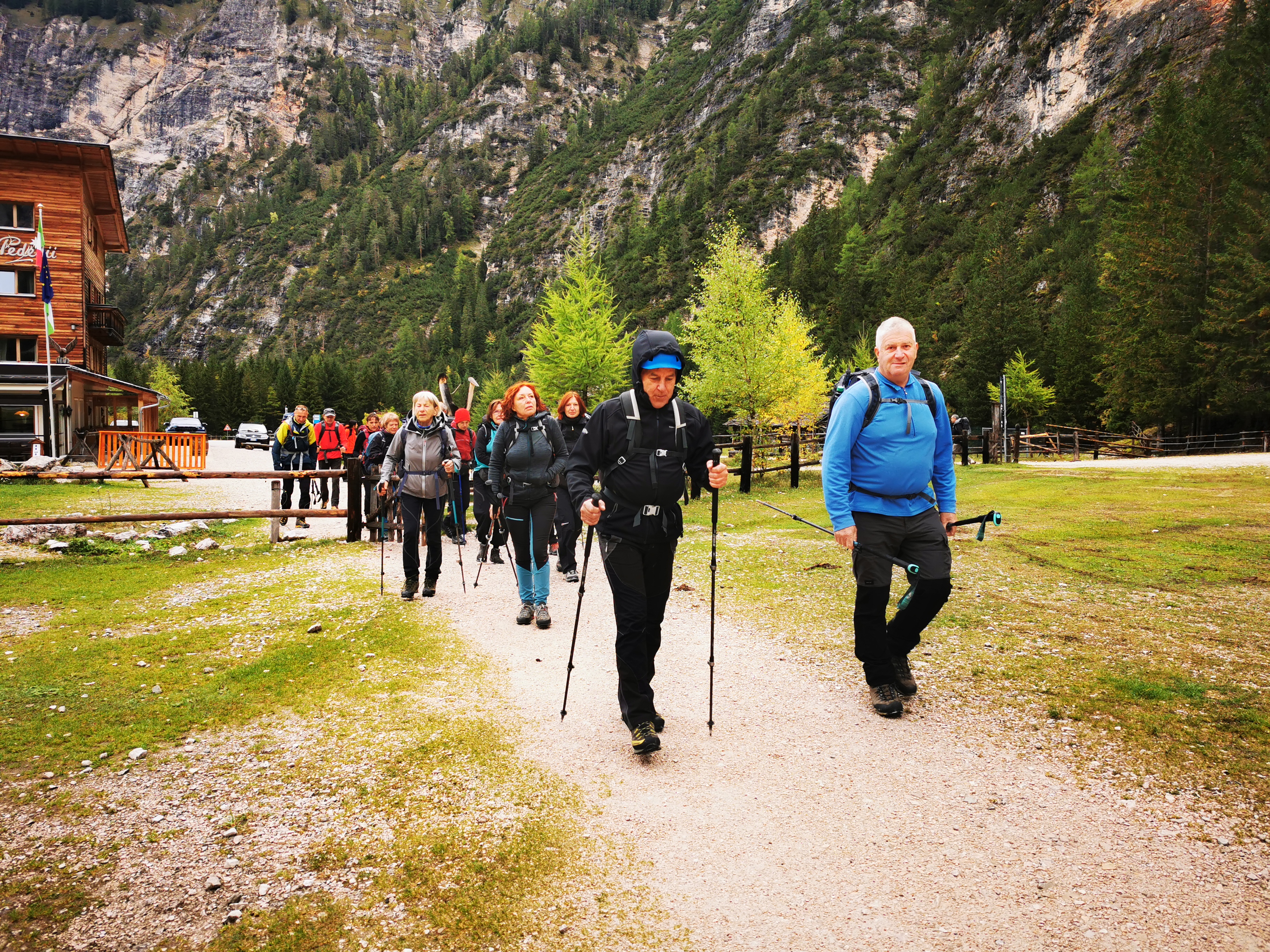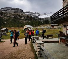 Ob 5h smo štartali iz Vrtojbe na prelaz Passo Furcia. Ker je rosilo smo se odločili da ne gremo na PIZ DE PEREZ temveč na Kronplatz 2275m. Na vrhu smo si ogledali oba muzeja (Lumen in Mesnerjev muzej) in k vozilom se vrnili po krožni poti. Iz prelaza smo se z vozili zapeljali do naše nastavitve v San Martino di Badia – Apartamenti Piculin. -Drugi dan sva s Karmen se domenili, da ona vodi hitrejšo skupino iz rif. Pederu na Col Bechei 2794m z vso zimsko opremo. Saj je bila potrebna zaradi zasnežnenih vrhov, ki so segali čez 2200m Jaz pa sem vodila ostalih 9 planincev po isti poti, vendar smo iz jezera Le de Limo se povzpeli na 2455 m nižji in nezasneženi vrh po brezpotju. Vračali smo se na rif. Fanes, kjer smo se srečale obe skupini in se skupno vračali k vozilom in v naše apartmaje. -Tretji dan smo se vsi skupaj povzpeli iz Badie z žičnico na La Crusc 2045 m in od tam nadaljevali po čudovitih policah do sedla Ju la Crusc 2612m. Tu smo se razdelili v dve skupini. Za lažjo varianto je Karmen 9 udeležencev popeljala na 2705 m visko PIZ di Zuber in se preko Val de Medesc vračala na zgornjo postajo žičnice. Ostali smo pod vršaci po zasneženi poti dosegli Sasso delle dieci 3026m in se tam odločili da osvojimo še Sasso Cavallo 2907m in se vrnemo po poti vzpona, da ujamemo še ostale udeležence in še zadnjo gondolo za v dolino. -Četrti dan smo se odpravili iz naših apartmajev ponovno proti Passo Furcia in od tu proti Piz de Peres 2507m. Tudi pri tej turi smo se razdelili v dve skupini. Ena skupina je po dokaj zahtevnem spodnjem delu in lažjem travnatem svetu osvojila vrh in se preko sedla Passo Tre dita vrnila na izhodišče. Druga skupina si je to pot olepšala z osvojitvijo zelo težko ferate, ki poteka vzporedno s potjo vzpona. Naš letno-zimski tabor smo vsi srečni in zadovoljni zaključili s kozarcem vina in pive in pravo pojedino, ki sta jo v veliki meri omogočila Anica in Ivan Trampuž.