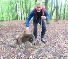 Debeli hrib je 540 m visok hrib in se nahaja na grebenu med Ljubljanskim barjem in dolino Horjulščice in že sodi v Polhograjsko hribovje. Za začetek poti so nas pozdravile domače koze v obori, nato se je pot začela zmerno vzpenjati. Med iskanjem užitnih gob in med klepetom smo v dobrih štiridesetih minutah prispeli do vrha, kjer so nas pričakale lesene skulpture – žaba, sova, veverica, polž in zajec. Naredili smo postanek za malico in slikanje.