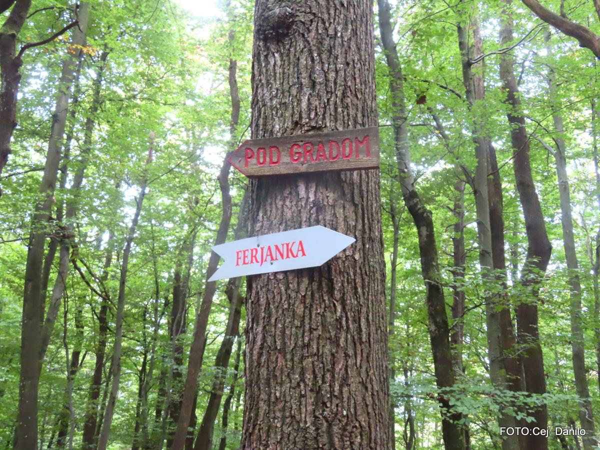 Nadaljevali smo proti zahodu oziroma proti Ferjanki. Pot nas je vodila po grebenu in v nadaljnjih petdesetih minutah smo prispeli na cilj. Vso pot smo nabirali kostanj in lisičke. Proti koncu poti nas je pričakal najdebelejši kostanj. Ferjanka je priljubljena izletniška točka, ki leži nad Logom in naseljem Brezje v dolini reke Horjulščice. Na Ferjanki je poleg vpisne skrinjice tudi brunarica z imenom Ferjanka, ki je bila do nedavnega samopostrežna brunarica, kjer si svoj »zapitek« plačal v posebno skrinjico. V bližini Ferjanke so poleg Debelega hriba še vrhova Strmec in Strmica, ki sta oddaljena le nekaj metrov od vrha Ferjanke ter Veliki vrh, ki pa zahteva še približno eno uro hoje.