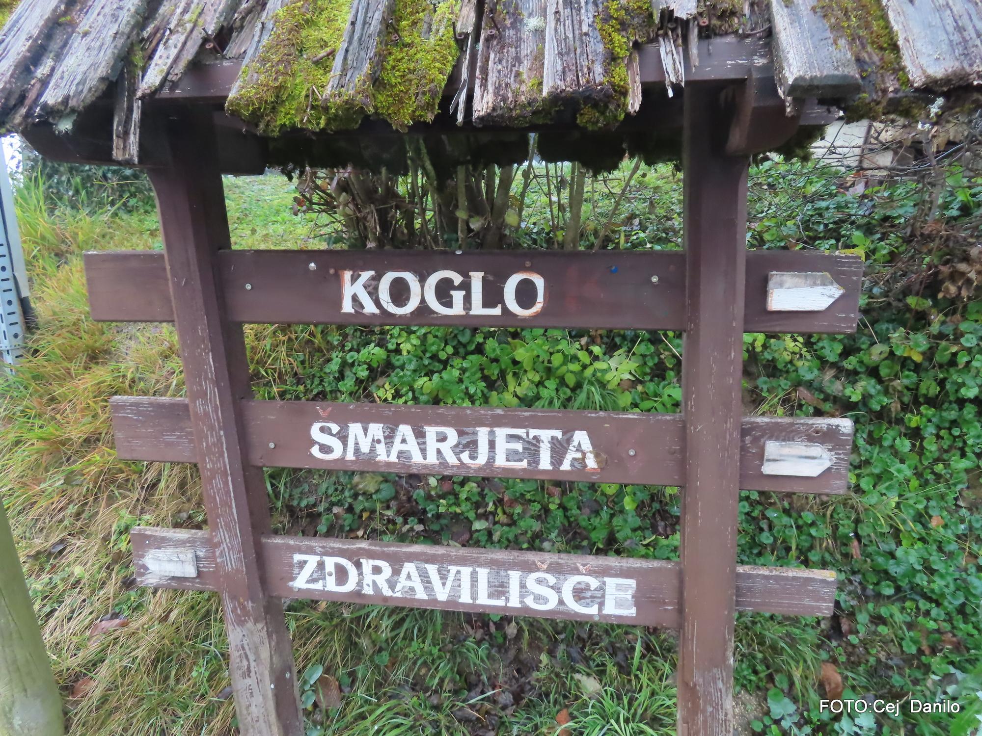 Koglo je 417 metrov visok vrh, ki v lepem vremenu nudi lep razgled na Šmarješke Toplice, Vinji vrh in ravnino ob reki Krki, prav tja do Gorjancev. Tokrat smo bili za te razglede prikrajšani, saj je dolino ves čas prekrivala debela megla.