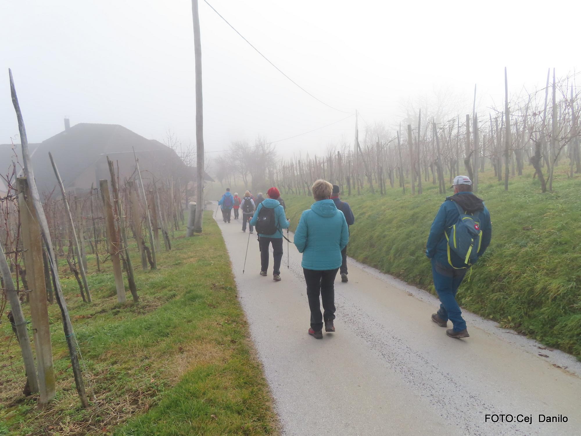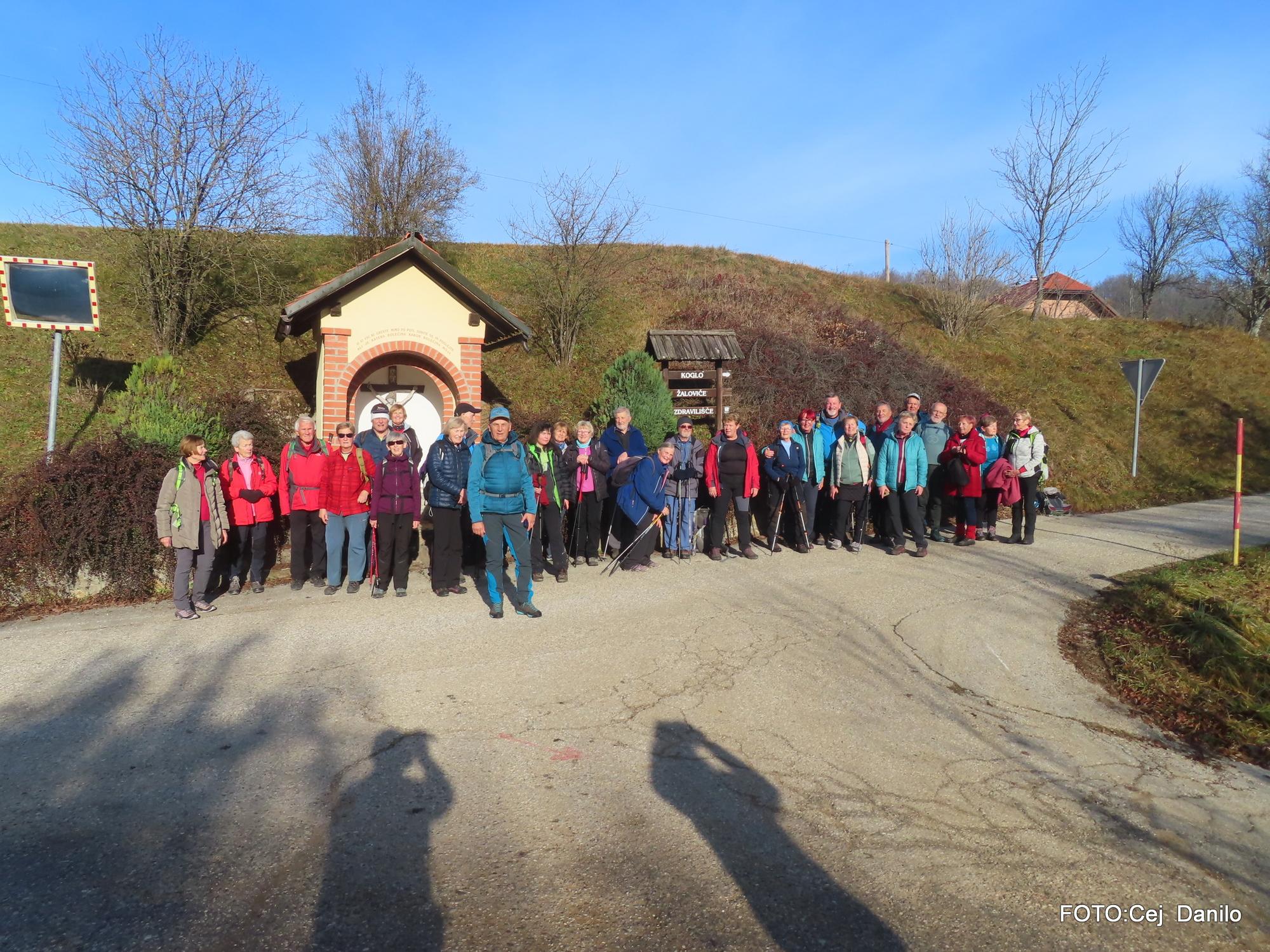 Z avtobusom smo se odpeljali do Šmarjeških toplic, kjer je bilo izhodišče za pohod na Koglo. Na vrh smo se podali v meglenem vremenu in pot nadaljevali preko vasi Brezovica.