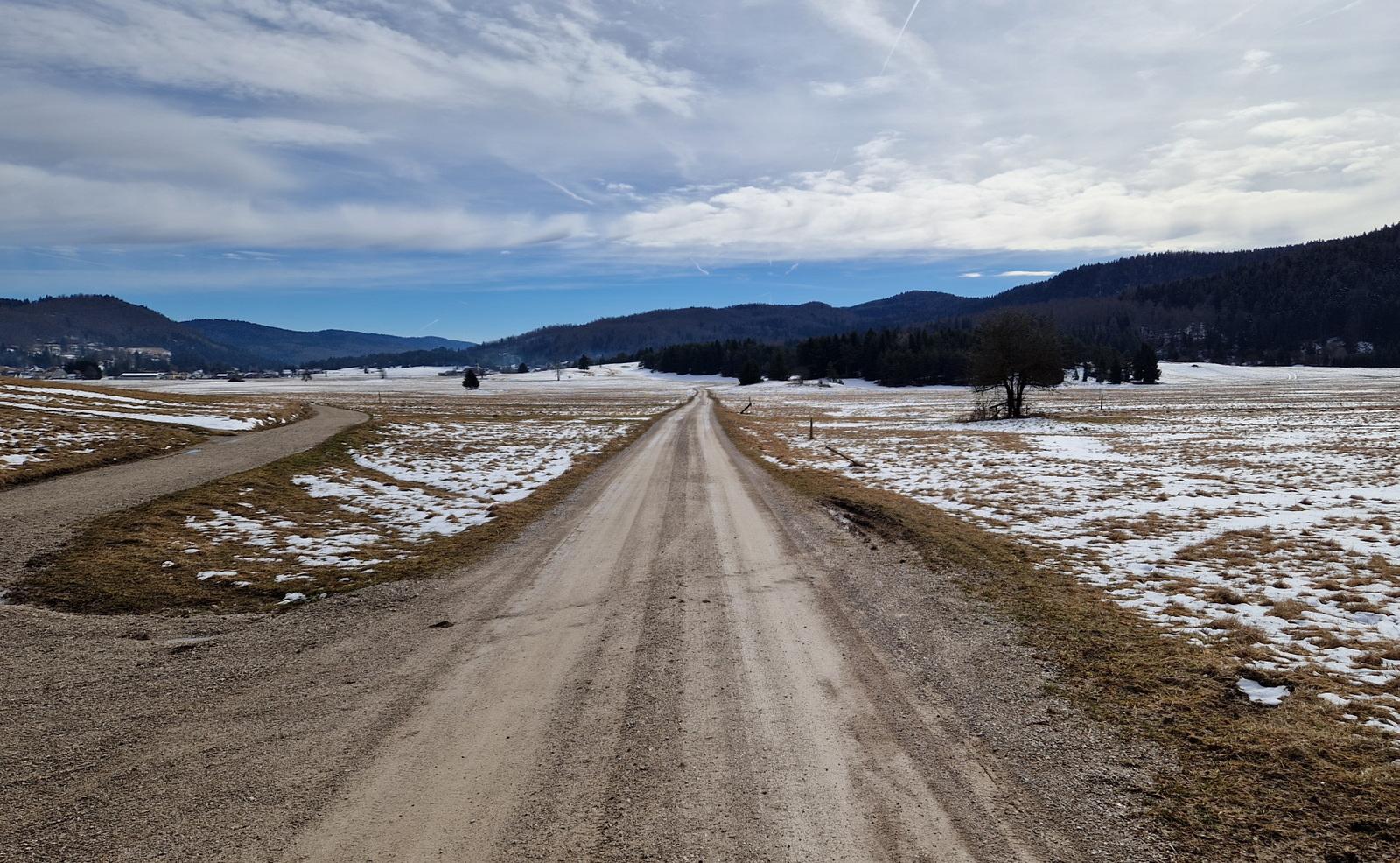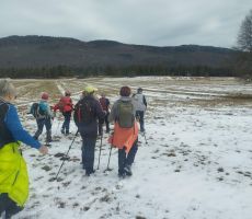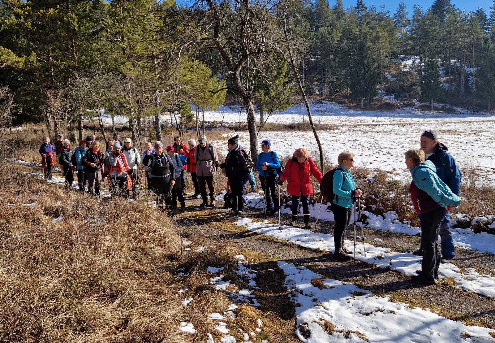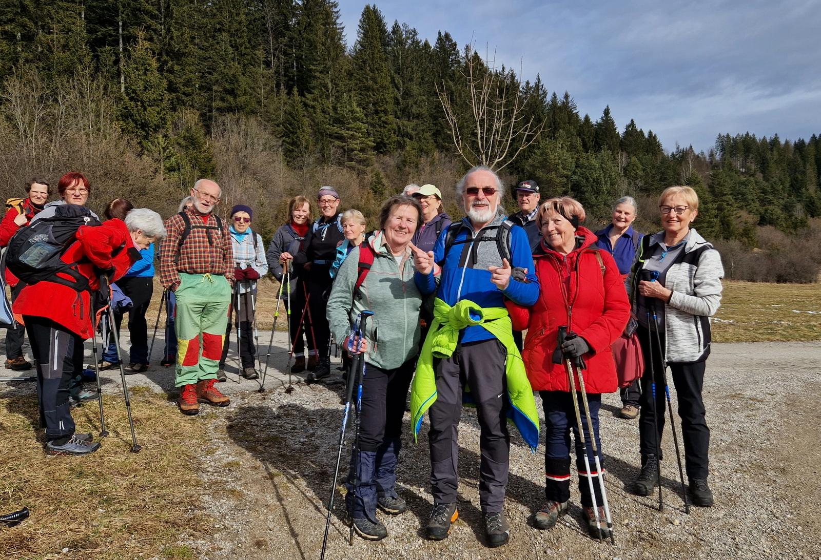 Ustavili smo se pri Rihtarjevi domačiji, kjer nas je pričakala Alenka Veber Rihtarjeva, ki nam je dobrodošlico izkazala s čajem in kavo in nas v nadaljevanju popeljala po stezah Babnega Polja. Kaj kmalu se je izza gozda pokazal Snežnik s svojo snežno kapo. Pot nas je nadalje vodila po gozdnih stezicah vse do razgledišča s kočo in imenom Ušivka. Tu se nam je pogled široko razprl na Babno Polje in tudi pogled na Snežnik je bil intenzivnešji. Naredili smo krajši postanek za malico in ogled razgledov, ter se v nadaljevanju ponovno spustili na polja.