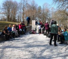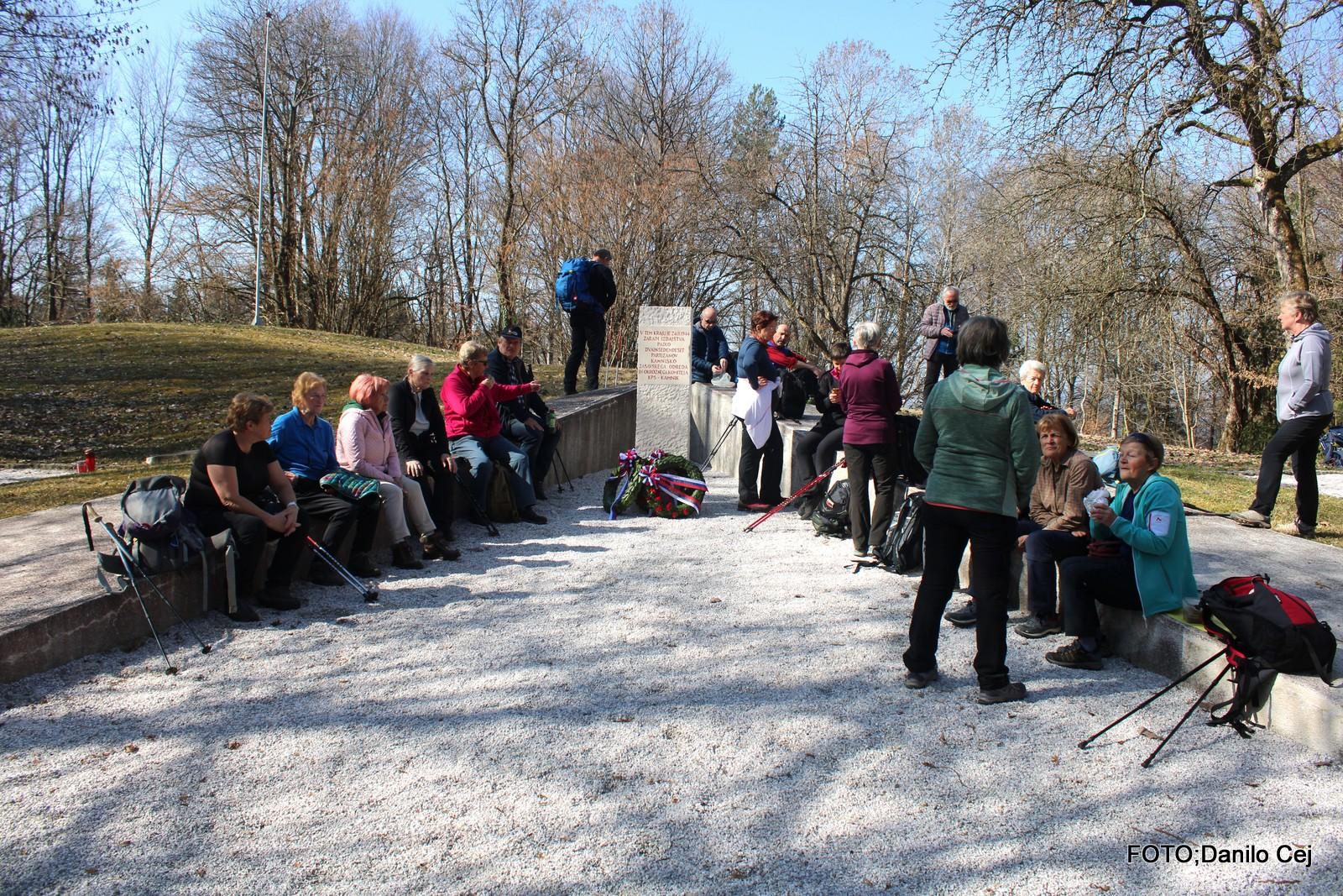 Oklo je 465 metrov visok hrib, do katerega smo se sprehodili v dobri pol uri. Na vrhu je manjši zaselek in spominski park NOB v spomin izdanim in padlim partizanom. Z vrha se nam je zaradi jasnega vremena in zaradi še neolistanih dreves, odprl prelep pogled na Kamniško Savinjske Alpe. Naredili smo počitek za malico in pot nadaljevali po Poti revolucionarnih tradicij, ki nas je pripeljala do drugega obeležja iz časov NOB. Na tem obeležju je za spremembo zapisano, da je četa partizanov prizadejala okupatorju velike izgube, sama pa iz boja izšla kot zmagovalka, brez žrtev.