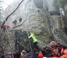 Naš kranjski vodnik Polde se je tokrat odločil, da nas popelje v Poljansko dolino. Z avtobusom se odpeljemo iz Ljubljane proti Kranju, kjer se nam pridružijo članice in člani z Gorenjske. Nadaljujemo vožnjo proti Škofji Loki, Gorenji vasi v Poljanski dolini in naprej mimo Lučin do naselja Goli vrh (900 m). Peš se povzpnemo do markantne utrdbe nekdanje Rupnikove linije. V spremstvu jamarskega in turističnega vodnika Matjaža se spustimo v podzemni bunker. Ker je glavni vhod zasut, se je treba v notranjost preriniti skozi okroglo strelno lino, kar povzroči med pohodniki veliko zabave. Sledi sestop v 25 metrov globok jašek. Na dnu se nam v soju baterijskih svetilk razkrijejo velike betonske dvorane, dolgi hodniki in stopnišča nikoli dokončane vojaške utrdbe, ene izmed mnogih, ki jih je pred II. svetovno vojno gradila starojugoslovanska vojska ob nekdanji Rapalski meji z Italijo. Med prebivalstvom, ki je v veliki meri sodelovalo pri gradnji in oskrbi, se je obrambne črte prijelo ime "Rupnikova linija", po generalu Leonu Rupniku, ki je bil vodja projekta.