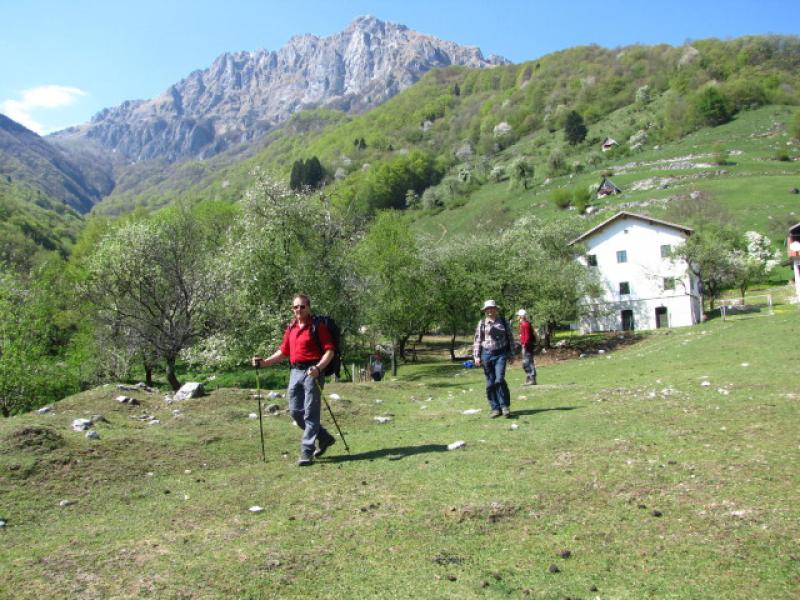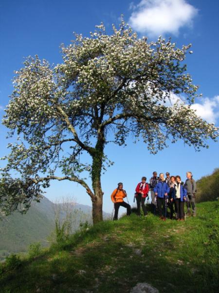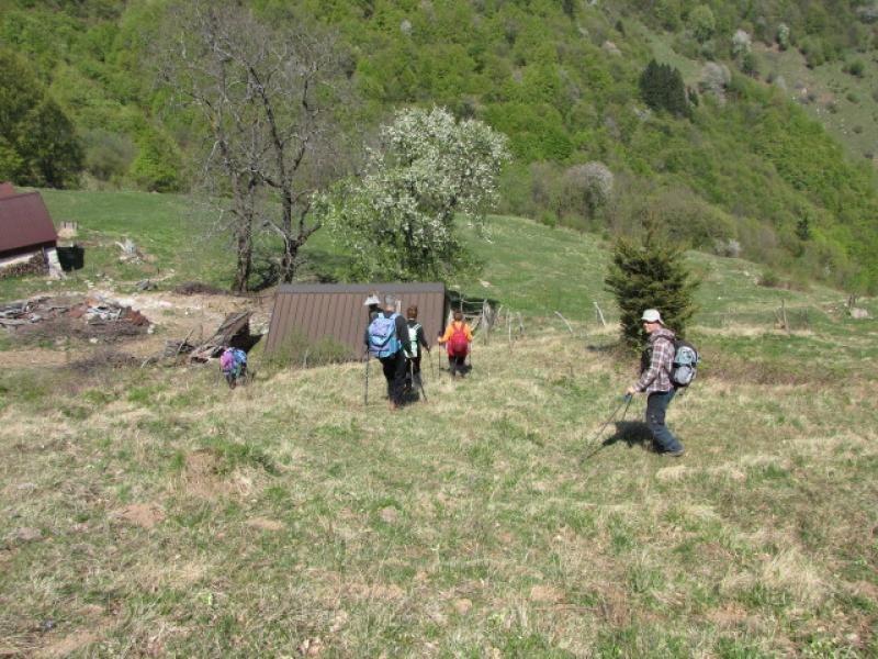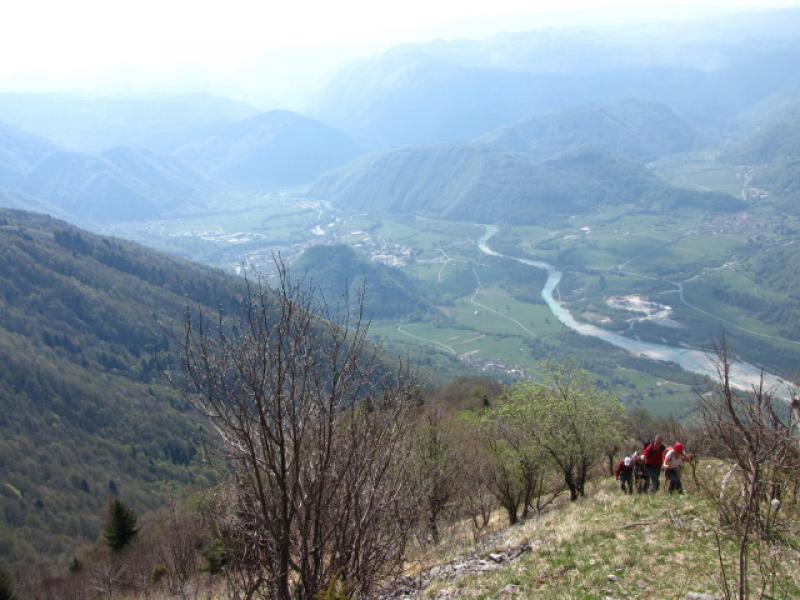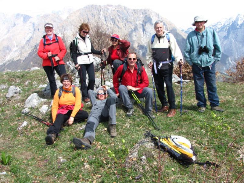Zatolmin, izhodišče nedeljskega izleta nas je pričakal s toplim soncem. Že takoj na začetku poti smo se strmo vzpeli skozi vas in jo po južnem pobočju Vodil vrha mahnili skozi pašnike proti Mrzlemi vrhu. Pot se je zlagoma dvigala skozi redek gozd, v podrasti pa so se prebujale spomladanske cvetice. Tik preden smo se dvignili iz gozdne meje smo prečkali Pot miru, ki povezuje na tem območju ostake iz I. svetovne vojne. Mi pa smo nadaljevali direktno ob ostankih jarkov proti vrhu. Le ta nas je nagradil s prelepimi razgledi in kaj hitro smo pozabili na zadnji del vzpona, ki je malo bolj zoprn, saj je precej strm. Pogledi so nam segli do Svete gore na jugu, na zahodu se je bohotilo Kaninsko pogorje in Kobariški stol, za njim so se kazale v vsej lepoti Rezijanske gore. Proti severu pa smo imeli pregrado Krnske verige in mogočni Rdeči rob se pred nami bohotil kot na dlani. Greben Tolminskih gora se je nadaljeval proti Voglu in Rodici. Kar obsedeli smo na vrhu in vsak zase razmišljal kako krvavo zgodovino imajo te prelepe gore. Kljub temu pa smo morali nadaljevati pot, pred nami je bil še sestop preko Tolminskih planin, mimo Javorce v Polog. Ob sestopu z vrha smo si ogledali še Madžarsko kapelico, ki je v enem izmed rovov, potem pa smo se počasi spustili do planine Prtovč in nadaljevali mimo ostalih treh planin naprej proti Javorci. Vse planine so poleti zelo živahne, kjer se pase živina iz doline. Sadno drevje se je bohotilo s cvetočimi vejami, narava se je prebujala s spomladanskim cvetjem, iz doline pa je vlekel topel veter in prav prijetno je bilo pohajkovati od planine do planine. Kar hitro smo se znašli na travnikih v Javorci. Ker v tem letnem času cerkvica še ni odprta za turiste, smo si vse skupaj lahko ogledali le od zunaj. S tem pa se zaključilo naše potepanje. Preostala nam je le še vožnja do Zatolmina, kjer smo ob kavi obudili spomin, kje vse smo se v tem lepem dnevu potepali in kaj vse smo na poti videli. Kljub utrujenosti so obrazi kazali zadovoljstvo in si na tihem zaželeli, da bi bilo še veliko lepih izletov. Tudi meni je lepo, ko vidim, da so na koncu udeleženci zadovoljni, predvsem pa vsi srečno in veseli prispemo v dolino.