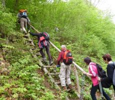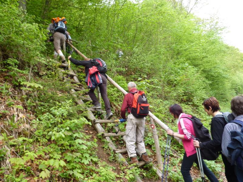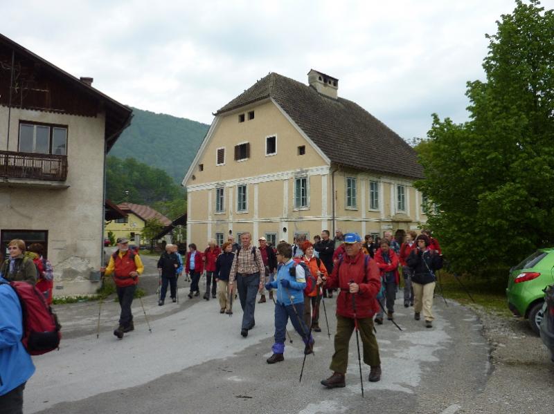 Kljub ne preveč obetavni vremenski napovedi, je odpeljal avtobus iz Ljubljane samo z nekaj praznimi sedeži, ki so jih hitro zasedli naši člani z bežigrajskega in črnuškega dela Ljubljane ter Domžal. Danes nas je pot peljala na savinjski konec, kjer se nam je obetala zanimiva pot. V Polzeli so se nam pridružili prijatelji iz celjskega društva ter 'domači' vodnik Ferdo Glavnik. V Letuš, kjer smo začeli s hojo, so se pripeljali tudi člani iz mariborskega društva. Vseh skupaj nas je bilo kar lepa četica, ki se je podala čez most preko Savinje po markacijah Savinjske planinske poti. Že takoj na začetku smo ugriznili v kolena in se kaj hitro povzeli na solidno višino z lepimi razgledi. Ob poti smo občudovali zeleno obarvani gozd z neštetimi odtenki te prečudovite barve. Mnogo spomladanskega cvetja je sicer že odcvetelo, kljub temu pa je ostalo za naše občudovanje še marsikaj, če ne kaj drugega pa zeleno-rumene planjave cvetočega regrata. Pot nas je vodila mimo nekaj lepo urejenih kmetij, kjer se na vrtovih domačinov nismo mogli nagledati prelepo obarvanih azalej, narcis, da o cvetenju jablan in hrušk ne govorim. Pogledi so nam uhajali v daljavo, kjer smo najprej občudovali Goro Oljko, prikazala se nam je Čreta s cerkvico na vrhu, ko pa se je pot prevesila proti Nazarjam, so se pred nami dvignile Golte, v daljavi pa sta dolino zapirala Lepenatka in Veliki Rogatec (Veliki Rogac ali Mrtvi menih).