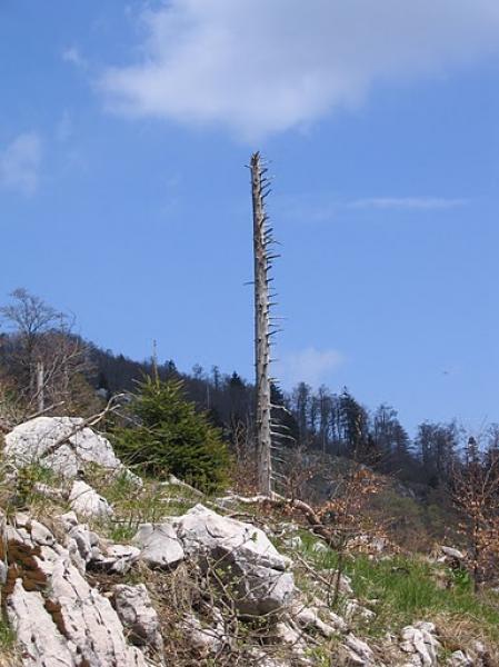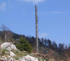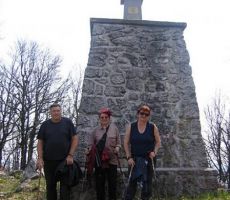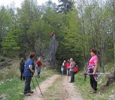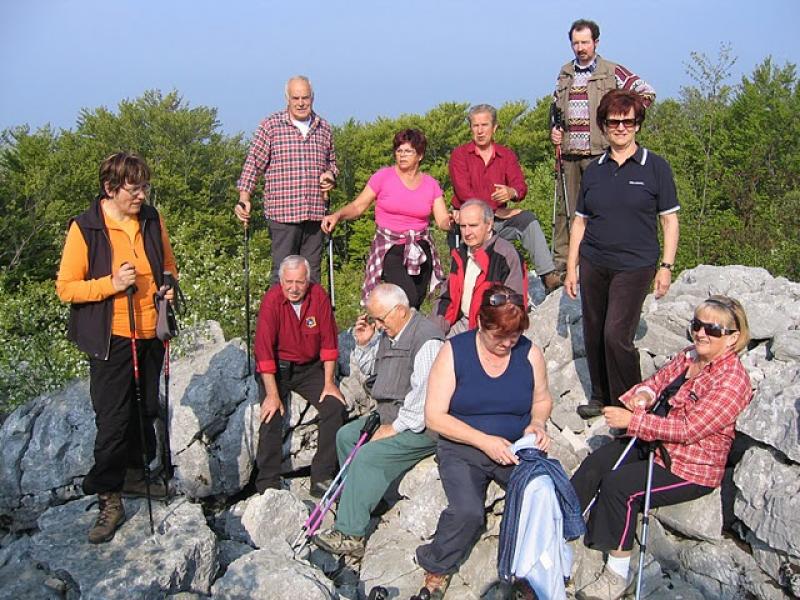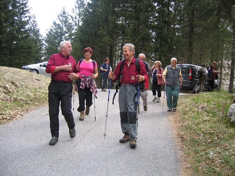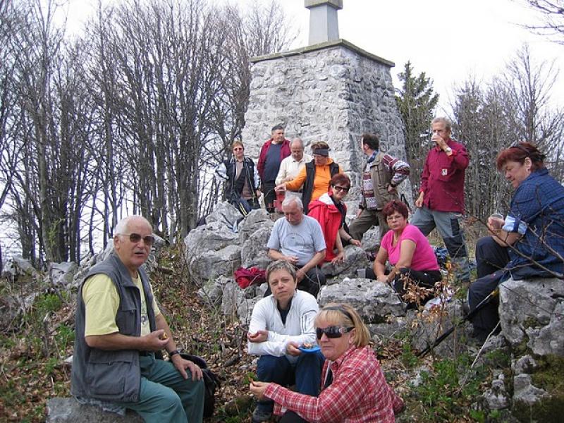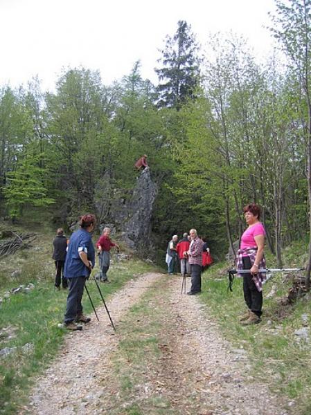 Ko se makadamska pot odcepi, se Simon odloči, da bo naš spremljevalec v rešilnem vozilu - no nekakšna dežurna reševalna ekipa (naj takoj povem, da je pri takih izkušenih planincih nismo rabili). Ostali smo se zložno vzpenali po makadamski poti in spet si lahko poslušal tisto sladko žuborenje potoka, ki je prihajalo iz naših srv v naša usta. Pot smo z lahkoto premagovali in končni cilj dosegli vsi. Nekateri so se vzpeli še na vrh piramide, ker so upali naboljše razglede, vendar nas je obdalaj le Trnovski gozd. Ker nas je že dajala opoldanska lakota in žeja, so si nekateri postregli z malico na kamnu, na kateremu je bilo označeno, da je iz časa Marije Terezije, ostali pa smo se predali soncu in lepemu vzdušju in vremenu. Pot v dolino se nam je daljšala, pa vendar, moški skupaj (kar pet jih je tekmovalo) in me zadaj, smo le prišli do naših vozil in potoček je ponovno šumel. šumel...