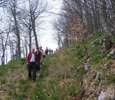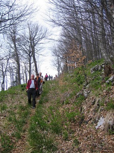 Iz Trnovega zavijemo proti Rijavcem, kjer nam domačini postrežejo s svežo kavo in tako (kar brez nahrbtnikov) skozi vas, mimo travnatih površin zavijemo v gozd, kjer šumijo naše besede, kot da bi tekla reka.Toliko si imamo povedati o Veliki noči, njej pripadajoči hrani, peki, kuhanju, do nabiranja zelišč, da se niti ne zavemo, kdaj smo pod skalnatim vrhom. Od tu še en močan vzpon in smo na vrhu Kuka, ki je čudovita razgledna točka po Trnovskem gozdu in okolici. Kot vedno, tata se potrudi naredimo krožno pot. Še prekmalu smo pri naših vozilih pot nadaljujemo proti našemu drugemu vrhu - Mrzovcu.