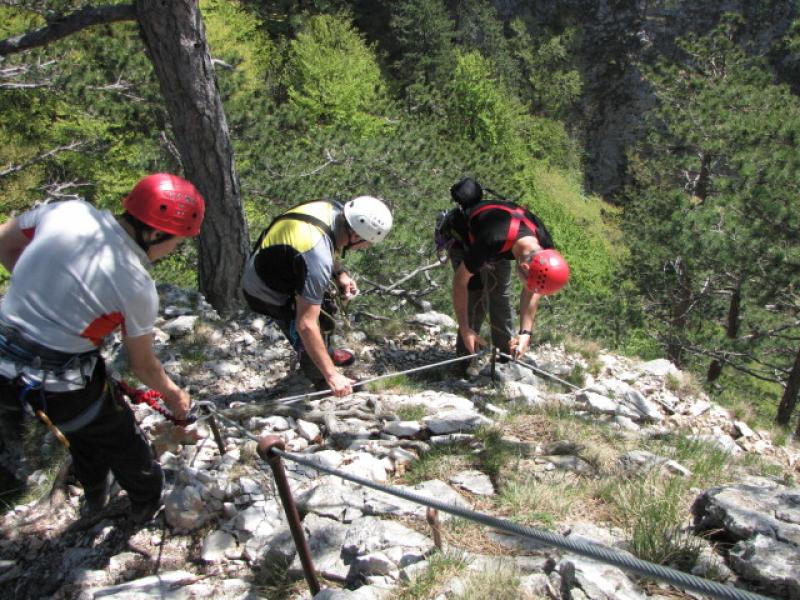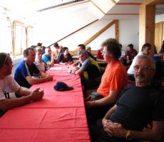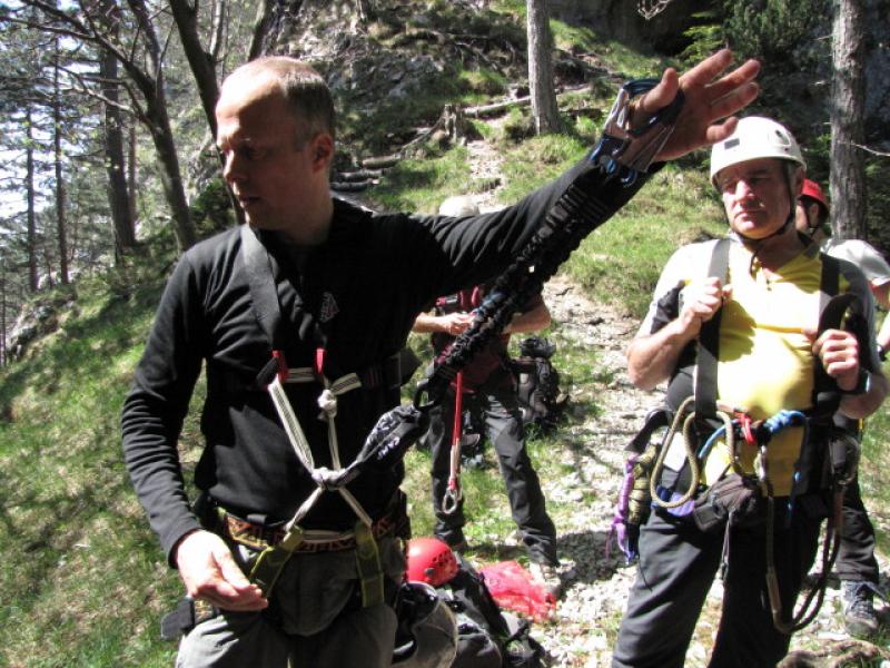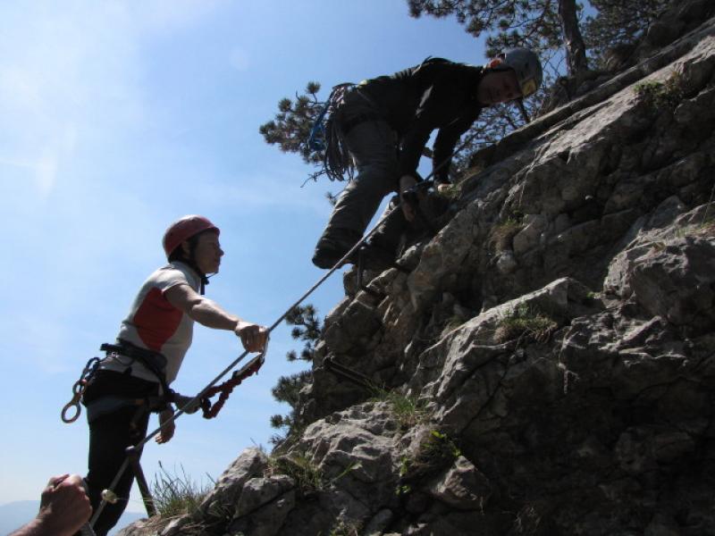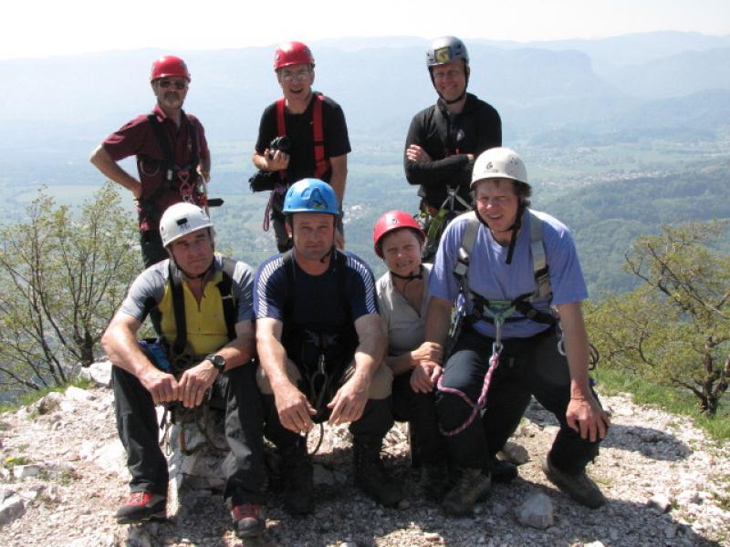 Z Ingrid sva se v petek in soboto udeležili dvodnevnega vodniškega izpopolnjevanja za vodenje v letnih razmerah, ki je potekalo na Valvazorjevem domu pod Stolom. Na izpopolnjevanje moramo hoditi vsake tri leta, da imamo veljavne licence za vodenje. Zbralo se nas je okoli 30 vodnikov z različnih planinskih društev. Vsake tri leta se program tečaja menja. Prvi dan nam polnili glave s teoretičnim delom, drugi dan pa smo imeli praktični del tečaja. Letos smo tako na teoretičnem delu, kot na praktičnemu delu veliko izvedeli in delali z GPS napravami, ki se tudi v gorništvu vedno bolj uveljavljajo. Seznanili so nas z novostmi v prvi pomoči in pri gibanju po zavarovanih poteh. Spregovorili smo tudi o vplivih na eko sistem pri različnih športnih dejavnostih v naravi, ki se pojavljajo v zaščitenih območjih. Pri praktičnemu delu tečaja smo s pomočjo gps naprave prišli do zavarovane stene pod Ajdno. Tu smo si nadeli pasove, samovarovanlne komplete in čelade ter pot nadaljevali do vrha. Pred povratkom po isti poti smo si ogledali še arheološko najdišče na Ajdni, vrh pa nam je postregel z lepimi razgledi na Julijske Alpe, del Savske doline in na Karavanke.