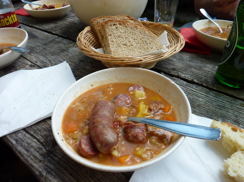 Ričet in jabolčni zavitek sta nam tako teknila, da smo si še kar nekaj časa oblizovali prste. Lepo sitim nam ni bil najbolj všeč vzpon do vrha nad kočo - do cerkvice Matere Božje, vendar je bil trud poplačan z lepim razgledom na mozirsko-nazarsko stran, kjer smo pred mesecem dni hodili po Martinovi poti. Kar hitro smo se spustili do Doma borcev, od koder se je večina povzela še na bližnji vrh Brezovec, nekateri pa so si skupaj s šoferjem avtobusa privoščili malo počitka.