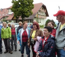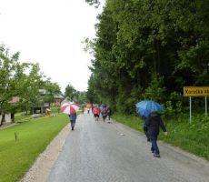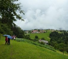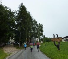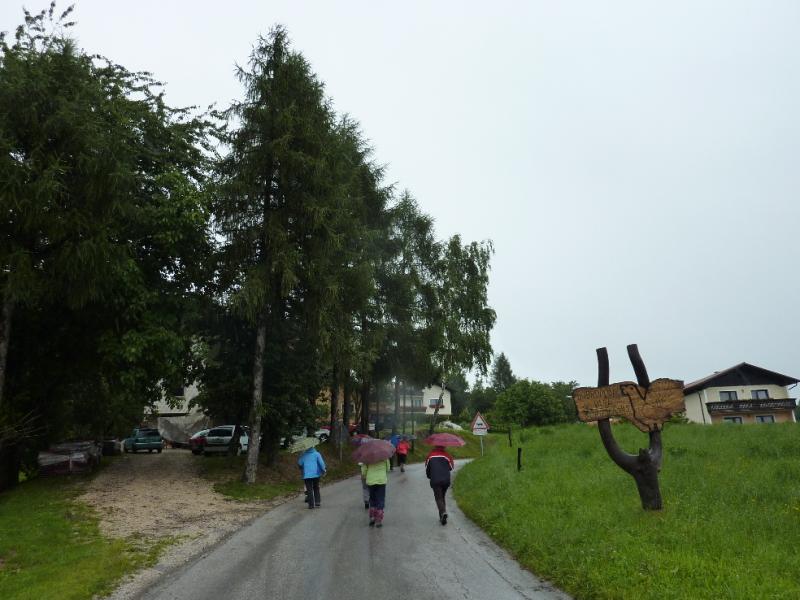 Kljub dežju smo se iz tople jedilnice odpravili na krajši sprehod po lepo urejeni vasi Gorenje in njeni okolici, večinoma po cesti, delno pa tudi po markirani planinski poti.