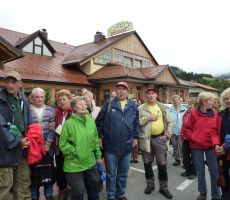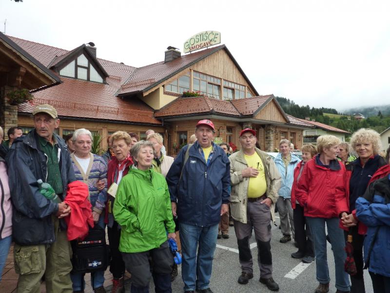 Letošnje tradicionalno, že 41. srečanje s planinskimi prijatelji iz PD HPT »Sljeme« Zagreb smo organizirali na Pohorju. Malo po 9. uri smo se sestali na Rogli. Po dobrodošlici naj bi se skupaj odpravili na prijeten pohod proti Lovrenškim jezerom, ki so botanični, zoološki in hidrološki naravni spomenik. Vendar se je vreme ravno ta dan zarotilo proti nam, zato jih je že zjutraj nekaj raje ostalo doma. Tudi nas, bolj korajžne je med močnim dežjem z vetrom minila vsaka želja po planinskem pohodu. Na toplem, v planinski koči znotraj Hotela Planja smo srebali kavo in čaj in se vsake toliko zazrli skozi okna v upanju, da se bo dež unesel. Na koncu smo se vendarle morali sprijazniti z odločitvijo, da pohod odpade in smo se z avtobusoma vrnili v dolino, od koder smo se povzpeli v Gorenje nad Zrečami, kjer smo bili v Gostišču Smogavc dogovorjeni za kosilo po opravljenem izletu. Z razumevanjem so nas sprejeli že ob 12. uri in nam postregli z okusno jedačo in dobro pijačo.