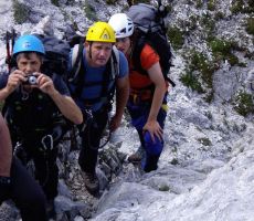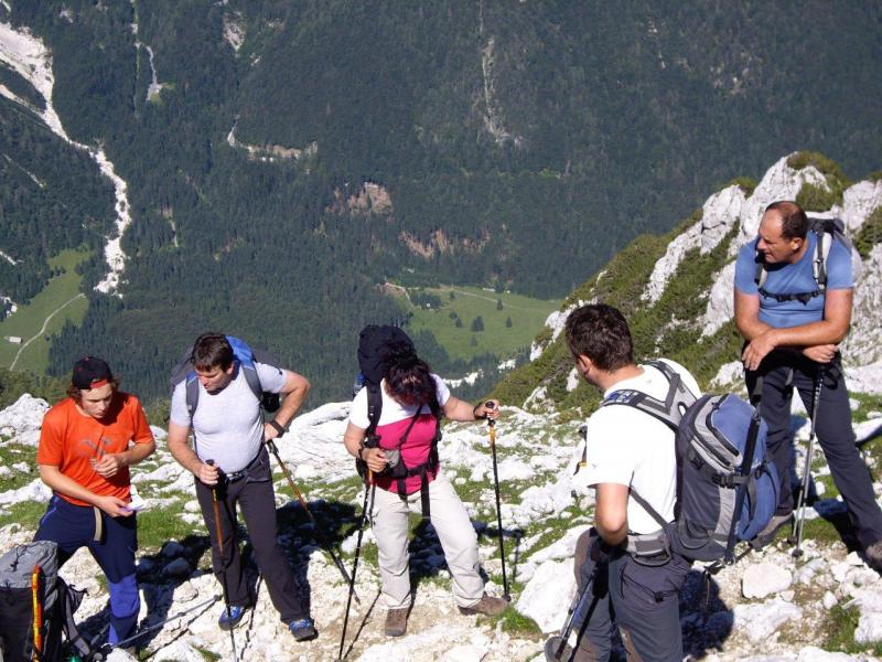 Po medsebojnem predstavljanju in uvodnih napotkih vodnika smo se napotili proti Krnici, kjer smo dotočili vodo, od tam pa odšli po označeni poti proti Dnini. Po prvem postanku smo ugotovili, da nam gre zelo dobro, da smo dokaj izenačena skupina. V podobnem ritmu smo nadaljevali vse do vznožja Lipnice, kjer smo si pred tehnično najzahtevnejšim delom namestili čelade in komplete za samovarovanje. Na tem odseku poti smo na drugo mesto postavili udeleženko, ki je pred tem zaznala rahle težave z mišicami, katere pa smo tudi pravočasno odpravili z magnezijevim napitkom. V zanimivejšem zadnjem delu vzpona udeleženci pri napredovanju niso imeli nikakršnih težav, potrebna je bila le večja mera previdnosti, saj je teren tu dokaj krušljiv. Pozorni smo morali biti tudi na ostale planince, predvsem zaradi padajočega kamenja. Vrh smo dosegli dobre četrt ure pred normo in glede na ugodne vremenske razmere smo napravili daljši postanek in ga izkoristili za malico, razgledovanje in fotografiranje.