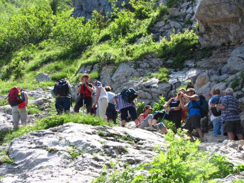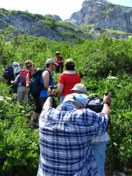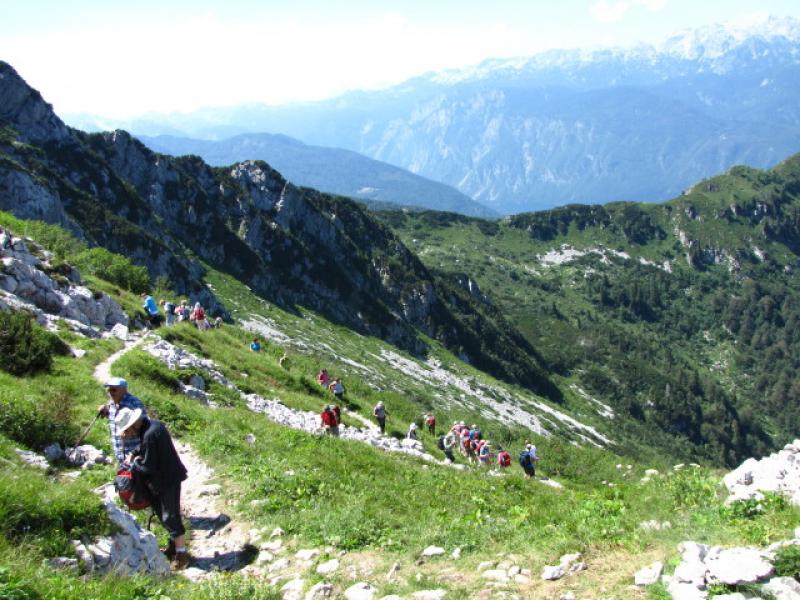 Žal so se naši udeleženci vračali nazaj na Bohinjsko stran in jim ni bilo dano, da bi občudovali njeno lepoto. Od Orožnove koče proti vrhu nas spremljajo tablice s slovenskimi in latinskimi imeni rastlin, ki jih srečujemo, tako da se lahko tudi nepoznavalci učijo botanike. Kljub raziskovanju in proučevanju rožic, smo prisopihali na vrh Črne prsti, ki nam je podarila prelepe razglede daleč naokrog. Kar obsedeli smo in uživali v gorskih lepotah.