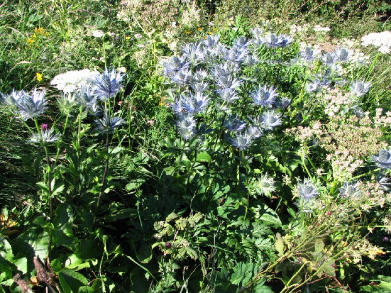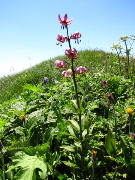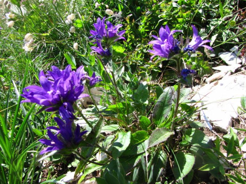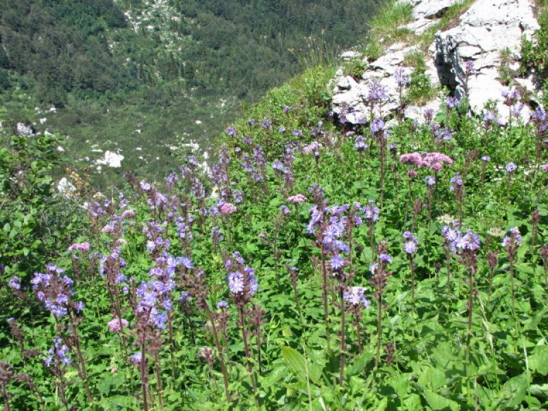 Ob povratku so se naše poti ločile na sedlu pod vrhom, kjer se je moja pot obrnila na južno stran v mojo rodno Baško grapo, kjer sem se srečala s prav tako bogato floro, le da tu rastejo več ali manj druge rože kot na severni strani. Delček tistega, kar cveti na Primorski strani, si lahko ljubitelji gorskega cvetja ogledajo v galeriji.