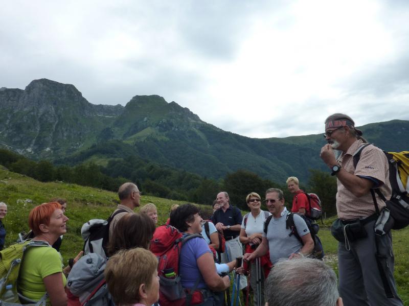 Mimo Nove Gorice smo se z avtobusom pripeljali do Kobarida, kjer smo se srečali z našim vodnikom Joškom Kodermacom. Čakal nas je prevoz s kombiji skozi Ladro, Smast, Libušnje in Vrsno do vasi Krn (865 m), kjer smo pričeli turo. Malo smo se bali dežja, zato smo kombije rezervirali tudi za povratek v dolino, čeprav se nas je tekom dneva vreme usmililo in je bilo prav prijetno. "Pot miru" nas je zložno vodila preko planine Pretovč (1140 m) na Mrzli vrh (1359 m). Med prvo svetovno vojno je na tem območju potekala frontna linija med italijansko in avstro-ogrsko vojsko, zato smo na poti naleteli na številne kaverne, jarke, bunkerje, ki danes predstavljajo urejen Muzej na prostem. Po končani turi smo se zapeljali po dolini Soče na Vršič. Obiskali smo naš Poštarski dom na Vršiču in poizkusili jedi nove oskrbniške ekipe.