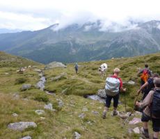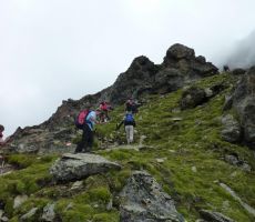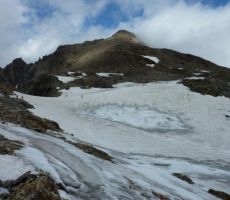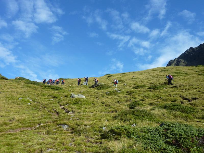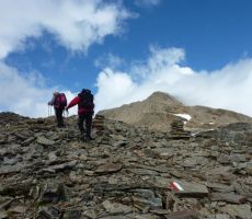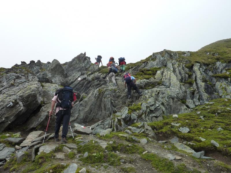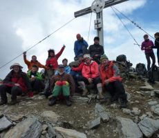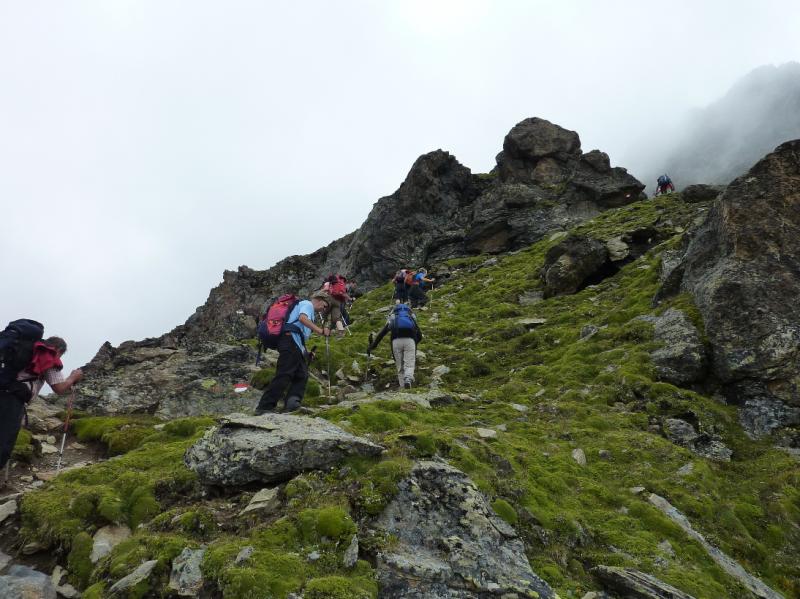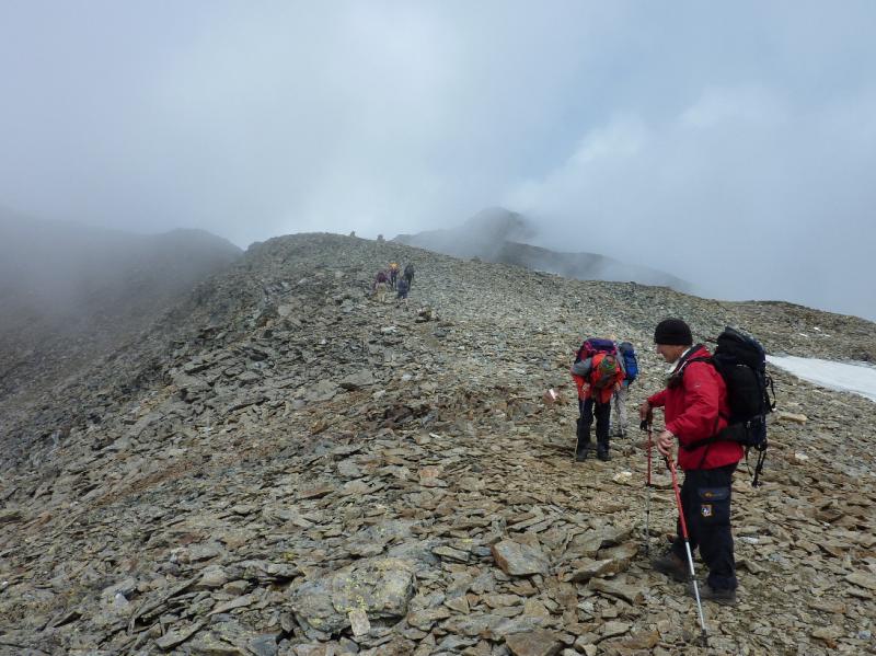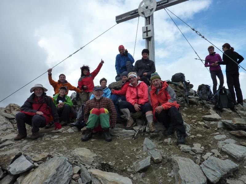 V program izletov društva sem ga uvrstil že v preteklem letu, kot enega izmed Vrhov prijateljstva treh dežel. Kljub večkratnemu prestavljanju datuma izleta, vreme ni popustilo. Zato sem ga ponovno razpisal za letošnji avgust v upanju, da bo tokrat šlo. Kot vemo, je letošnje poletje morda še bolj muhasto, kot lansko. Stabilno vreme je osnovni pogoj za celodnevno visokogorsko turo, poleg dobre telesne pripravljenosti za več kot 10 ur hoje in 1600 metrov višinske razlike. Tokrat je bila vremenska napoved ugodnejša, zato smo se ob štirih zjutraj odpeljali s kombijem v smeri Ljubljana-Jesenice-Spittal-Obervellach, malo pred Lienzem zavili proti prelazu Iselsberg in na drugem ovinku krenili na makadam proti dolini Debanttal. Parkirali smo pri jezercu Seichenbrunn, kjer je spodnja postaja tovorne žičnice (1680 m). Pridružili so se nam še članice in člani naše Planinske skupine Nova Gorica tako, da nas je bilo skupaj 13. Okoli 7.30 smo se začeli vzpenjati navzgor po dolini in na sedlo Seescharte (2533 m), s katerega smo se nekoliko spustili do koče Wangenitzsee Hutte (2508 m), ki stoji nad jezerom. Po krajšem postanku nas je 11 nadaljevalo po markirani, delno zavarovani poti št. 927 na vrh. Sonce so kmalu začeli zakrivati oblaki, zaradi česar je bil vzpon prijetnejši, razgledi pa čedalje slabši. Sredi poti so začele padati deževne kaplje s sodro, a le za kratek čas, zato pa je z višino postajalo hladneje, kar nas je vzpodbudilo k hitrejši hoji. Po približno treh urah smo bili vsi na vrhu, ki je bil v megli. Kmalu smo začeli sestopati po isti smeri, saj se je znova pripravljalo k dežju, mi pa smo želeli priti preko najtežjih mest v kolikor toliko suhi skali. Enim je uspelo bolj, drugim manj, vendar smo se vsi srečno vrnili do koče Wangenitzsee Hutte, kjer smo si privoščili počitek pred povratkom do parkirišča. Ostalo je le še slovo od Goričanov in vožnja v Ljubljano, kamor smo prispeli v poznih večernih urah.