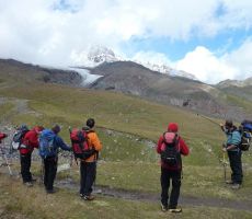 Po koncu 15-dnevnega potepanja po Gruziji in Armeniji (od 21. avgusta do 4. septembra 2011) se je šest planink in planincev iz PD Pošte in Telekoma Ljubljana ter PD Brežice namenilo povzpeti na pettisočak Kazbek v Visokem Kavkazu. Gruzijsko ime gore je Mkinvartsveri, kar pomeni Ledeni vrh.