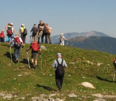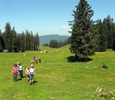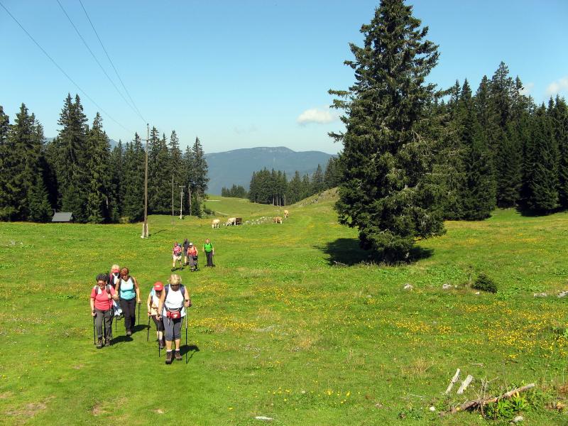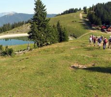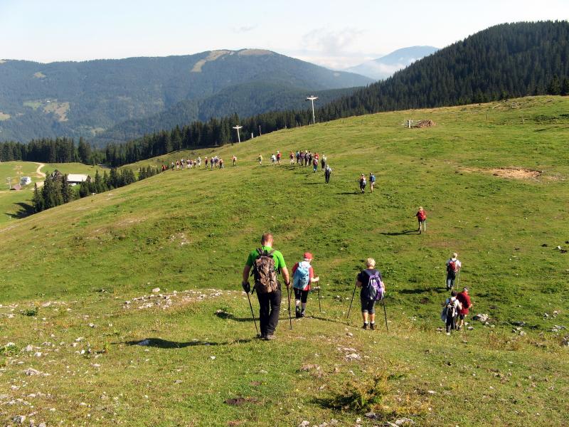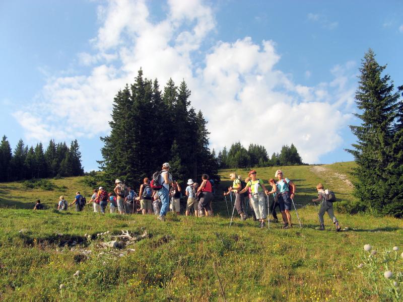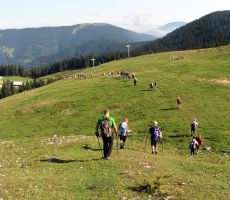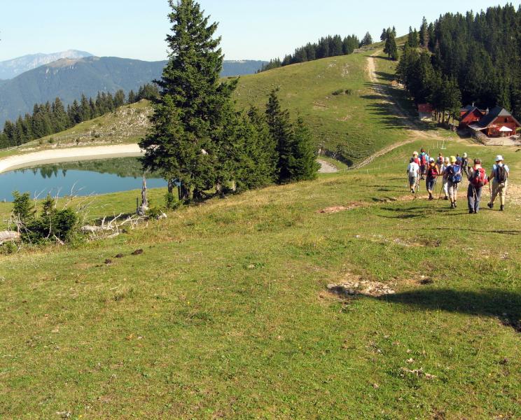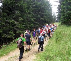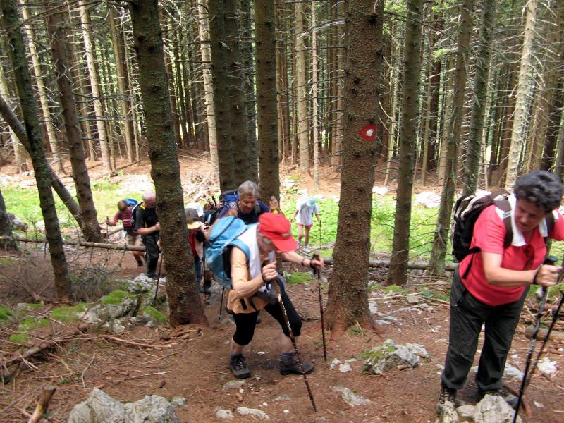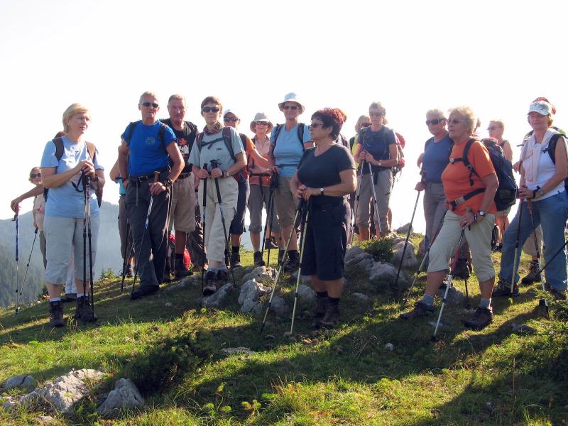 Predzadnjo vročo avgustovsko nedeljo, ko se je 43-članska skupina planincev našega društva odpravila na potovanje v Armenijo in Gruzijo, je kar številna skupina tistih, ki smo ostali doma, odšla na pohod po GOLTEH, ki sta ga pripravila in vodila naš vodniški par Ruža in Tone. Vroče jutro je stopnjevalo željo, da se čim prej umaknemo na ugodnejšo višino, kje nam bodo temperature bolj znosne, saj je termometer že v zgodnjem jutru kazal temperature po Sloveniji krepko čez mejo normale dolgoletnega letnega povprečja. Namesto do hotela na Golteh, smo se zapeljali le do spodnje postaje gondole, do vasi Žekovec, saj so nam žičničarji v ugodni ceni gondole nudili brezplačen topel obrok. Golte so apnenčasta visoka kraška planota na vzhodnem obrobju Kamniško-Savinjskih Alp, večinoma poraščena z gozdom in z značilnimi kraškimi pojavi kot so žlebiči, vrtače, brezna, jame in so eno od zelo priljubljenih zimsko-letnih visokogorskih središč. Planota leži med dolino Ljubnice in sotesko Ljubijo, proti JV pa se spušča v Mozirsko kotlino. Tu so dobile prostor številne planine, ime planote pa izhaja verjetno iz lastnosti krasa: »goltati vodo«. Z gondolo smo se popeljali do novega hotela Golte na 1410 m višine, od koder vodi nemarkirana, vendar zelo dobro označena krožna pot. Začne se že takoj ob hotelu, kjer nas smerokaz »POT PO GOLTEH« usmeri na strmo gozdno pot in nato čez travnike na razgleden vrh Medvedjak. Ob spomeniku NOB se za hip ustavimo, ker so od tu čudoviti pogledi, nato pa nadaljujemo mimo umetnega jezera pri Treh plotih. Akumulacijsko jezero na višini 1530 m v zimskem času zagotavlja vodo za zasneževanje smučišč. Po krajšem vzponu in nato s spustom pridemo do koče na Starih Stanih, kjer si privoščimo prvi daljši počitek. Nadaljujemo hojo po prijetni poti mimo Starih stanov, čez pašnike, vrtače, mimo jezerc, nato pa smo prav vsi zmogli še zadnji kar strm vzpon na najvišji, 1587 m vrh Boskovec z razglednim stolpom. Junak pohodniškega dneva je bil naš Lojze, ki ga hoja prav nič ni utrudila. Sledil je po razgibani poti le še spust do Mozirske koče, od koder smo po počitku nadaljevali hojo mimo kapele do Alpskega vrta, ki je najvišje ležeč in najlažje dostopen Alpski vrt v Evropi. Park leži na višini 1300-1400m, njegova površina pa se lahko primerja s površino petih nogometnih igrišč. Park ima več kot 100 vrst alpskih rastlin. Pot po Golteh smo zaokrožili in končali spet pri hotelu Golte. Tu so nas presenetili z res obilnim ter slastnim kosilom, ki se je zelo prileglo, saj je pot bila v vročini kar dolga. Nato je sledil le še povratek z gondolo nazaj v dolino, kjer nas je naš pozorni voznik pričakal v že ohlajenem avtobusu. Lep pohodniški dan smo preživeli v prijetni hoji in veselem druženju, za kar gre tudi zahvala našima vodnikoma, Ruži in Tonetu.