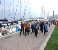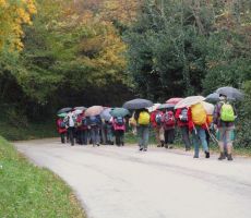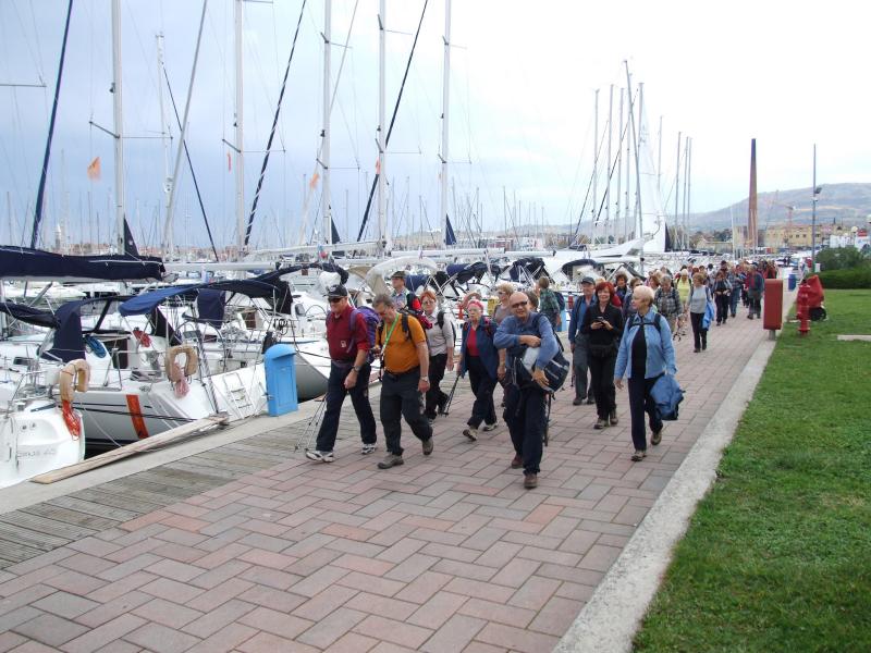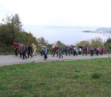 Namenili smo se prehoditi del Izolske poti na Hrib (krožna pot P2) vse do Portoroža, da bi se naužili morskega zraka in lepot žarečega ruja. Od ladjedelnice v Izoli smo se mimo Simonovega zaliva povzpeli na Belvedere, nadaljevali do Križa nad Strunjanom in se z griča Ronek (116 m) spustili v Strunjan. Prehodili smo še naravno znamenitost Stjužo in strunjanske soline, pri hotelskem naselju Salinera pa smo si morali že nadeti pelerine ali odpreti dežnike. Vso pot mimo Pacuga v Fieso smo prehodili v dežju. Tudi v Piranu ni kazalo na izboljšanje vremena, zato smo tu končali s hojo, lepa pot ob morju do Portoroža pa bo prišla na vrsto kdaj drugič.