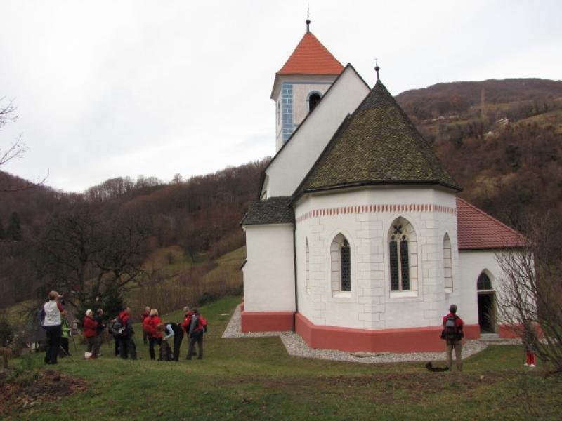Vsoboto, 10.12.2011 smo se v koči Velikonočnica pod Bočem zbrali varuhi gorske narave, ki smo ta naziv pridobili na letošnjem izobraževanu. Zaključno srečanje je organiziralo PD "Boč" Kostrivnica. Zjutraj smo se zbrali pred podružnično šolo, kjer nas je pozdravil njihov predsednik. V šoli so nam pripravili krajši sprejem z nastopom folklorne skupine in po prigrizku smo se odpravili z njihovimi vodniki mimo naravnega vrelca do lepo obnovljene cerkve sv. Lenarta. Pot nas je naprej vodila v spremstvu gozdarja mimo zapuščenih in raztesenih domačij. V teh krajih je zelo bogata flora, prav tako pa tudi stavbna dediščina, ki nezadržno propada. Še posebej so zanimive drevesne vrste značilne prav za to območje. Kljub neobetavni vremenski napovedi, nam je bilo vreme naklonjeno in nas je nagradilo z lepimi razgledi proti Donački gori, Bohorju iin Lisci. Kar hitro smo prišli do planinskega doma na Boču, kjer nam je oskrbnik pokazal multivizijo o Boču. Tu ne raste samo velikonočnica. Travniki so bogati z neštetim rastlistvom, bogat je živalski svet, prav tako pa tudi geološka sestava tal. Žalostno je le, da je zaradi intezivnega kmetijstva in objestnosti ljudi velikonočnica na tem delu skoraj izumrla. Potrebno bo še veliko časa, da se bodo tla normalizirala in se bodo ustvarili pogoji, ki bodo omogočili tej roži naravno razmnoževanje.