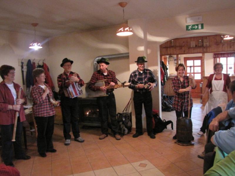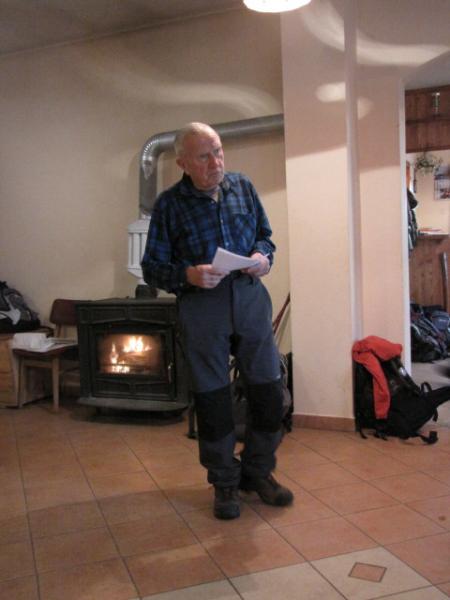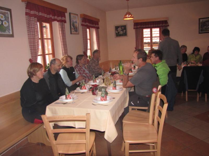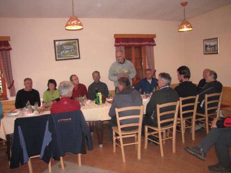 Po ogledu smo se podali še do njihove koče pod Dreveniško goro, kjer nas je kuharica pričakala z odličnim kosilom. Po slabih štirih urah hoje in spoznavanja krajev pod Bočem se je že kar prileglo dati nekaj toplega v usta. Pred nami pa je bil še uradni zaključek IX. usposabljanja varuhov gorske narave.