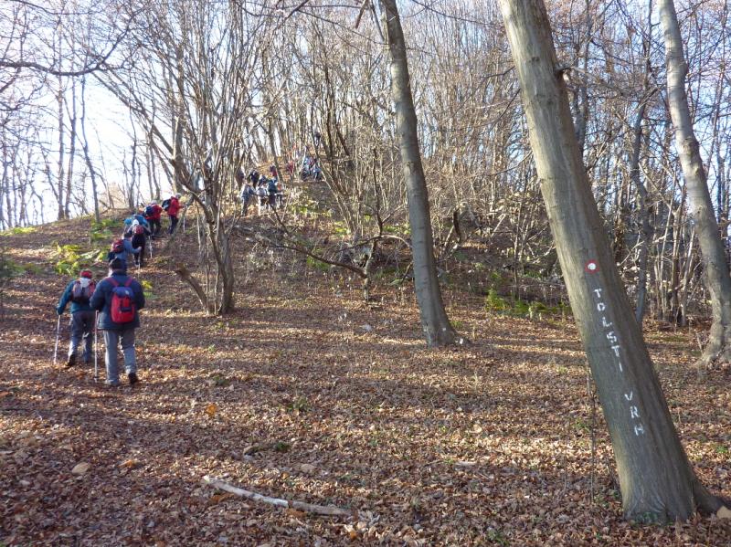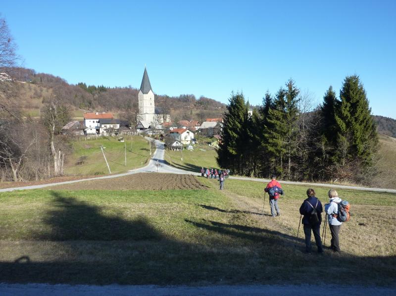 Zavijemo desno proti Šentrupertu (573 m). Tu je pričetek naše hoje v precej hladnem jutru. Do Svetine (689 m) hodimo pretežno po makadamski poti. Ogledamo si gotsko cerkev, obiščemo grob popotnice in pisateljice Alme Karlin. V lepem jasnem dnevu nas sonce prijetno ogreje, še bolj pa dokaj strm vzpon na Tolsti vrh (834 m), od koder so lepi razgledi po Savinjski dolini in vse do Boča z Donačko goro.