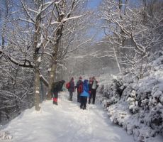 Toda vse to je bilo v trenutku, ko smo stopili na zaledenelo betonsko ploščad železniške postaje tako daleč in nepomebno. V resničnost nas je vrnil rahel veter in -110C. Nekateri so za trenutek potihem podvomili v pravilnost svoje odločitve, toda kot skupina smo ostali neomajni. Opravili bomo še zadnji del Badjurove poti, pa naj bo še tako mraz. In glej ga zlomka. Med prečkanjem mostu so nas sramežljivo pozdravili prvi sončni žarki. »Pejmo, pejmo, zebe nas!« so priganjali nekateri člani skupine. Odločno smo jo ubrali po hribu navzgor proti Jančam. In, kot da se je naše družbe razveselilo tudi sonce, se je v vsej svoji jutranji lepoti razlilo po vrhovih smrek in delu še vedno speče Litije. Pot do Širmanskega hriba je bila mimogrede za nami. Na vrhu ene številnih vzpetin smo zagledali v bršljan ovita drevesa in že smo bili pred pred hišo, ki je bila zgrajena daljnega leta 1901. Le nekaj metrov stran je bila leta 1907 postavljena za oko in dušo prijetna kapelica, še vedno zgledno vzdrževana in ohranjena. Pot smo nadaljevali v slikoviti zimski idili. Ivje na drevesih se je leskatalo v soncu in o mrazu so pričala le naša pordela lica.
