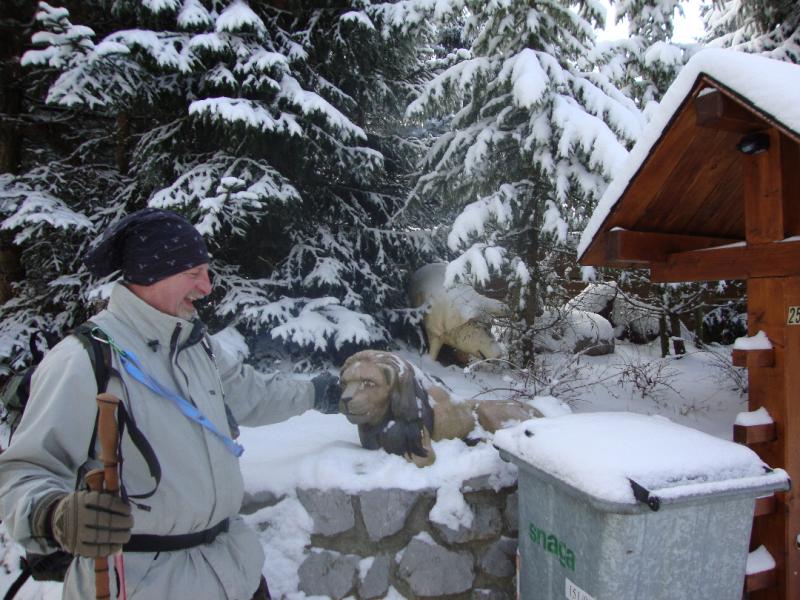 Kar nenadoma smo bili v Tujem grmu. Za hip smo postali pred vhodom v kinološko društvo, kjer so ležali s snegom prekriti lev, prašič in druge živali. Mraz in lakota sta po dobrih 2,5 urah hoje, na večinoma -100C, naredila svoje. Pohiteli smo proti Planinskemu domu II. grupe odredov na Jančah, kjer je že čakala skodelica toplega čaja in obilna skleda jote s klobaso. In tudi slasten štrudel se je prilegel. Po daljšem počitku smo se zadovoljni odpravili proti Lazam pri Dolskem. V čakalnici železniške postaje se je našlo dovolj časa za dokončanje zjutraj pričetega klepeta in obujanje spominov na minule pohode ter na poletje..., toplo sonce...