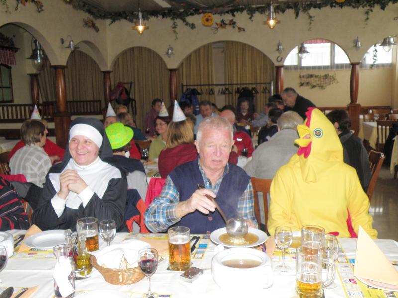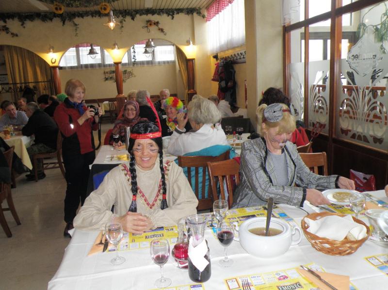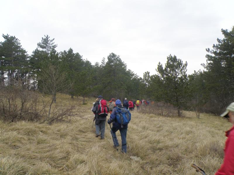 Nič kaj lep dan se ni obetal na zahodni strani Slovenije, članice in člani PD Pošte in Telekoma Ljubljana pa smo se ravno na tak dan (pač v skladu s programom) napotili proti Kopru. Na poti iz Ljubljane sta nas spremljala rosenje in gosta megla, vidljivost je bila slaba. Kar bo pa bo, smo dejali in se vdali v usodo. Ko se je cesta prevesila na primorsko stran, se je vidljivost izboljšala in nam vlila upanje na lep dan. Izlet je vodil Boris, v Rižani nas je počakal že stari znanec Branko Bratož Ježek, ki nas večkrat vodi po lepih primorskih poteh in skupaj smo se odpeljali na izhodišče v Hrastovlje. Še nismo dobro vzeli nahrbtnikov iz prtljažnika, že so začele padati debele kaplje, hitro smo pripravili pelerine ali dežnike, nahrbtnike pa oblekli v pelerinice. Par minut kasneje je dež prenehal, se še enkrat pojavil s par kapljami, potem pa odnehal in nam pustil, v sicer oblačnem vremenu, nadaljevati in končati pot. Od Hrastovelj v smeri Lačne smo hodili mimo njiv in vinogradov, v katerih so bile brazde počesane in poravnane od nedavne močne burje, ki je divjala na Primorskem. Ravninski del poti se je kmalu končal. Strmina ni popustila skoraj do vrha, ki smo ga dokaj hitro dosegli in se pri stolpu ustavili. Malo smo si privezali dušo, Ježek nam je razložil, kako so včasih živeli v teh krajih, kako so markirali pot na Lačno, kako so si organizirali delo pri vzdrževanju gozda in pašnikov na Lačni in kje je Lačna dobila svoje ime. Namreč, krave, ki so jih tu pasli, so zvečer domov hodile lačne. Trava je bila sicer kvalitetna, bilo pa je je premalo. Lepa pot vodi z vrha Lačne v Kubed, skoraj vso pot smo hodili ob požarnem zidu, ogledali smo si tudi ostanke nekdanjih naselbin izpred rimskih časov. V Kubedu se nam je pridružila skupina planincev, ki so se pripeljali z avtobusom iz Hrastovelj, ogledali smo si zvonik - Grad in cerkev sv. Florjana potem pa krenili preko Ivačevca v Rižano. Po nezmotljivi Borisovi evidenci smo prehodili 9,8 kilometrov, vzpona smo naredili 435 metrov in spusta 557 metrov. Zasedli smo svoje sedeže v avtobusu in pohiteli v Koper, kjer nas je v Emoncu čakalo kosilo. Že pred kosilom pa so začeli planinci izginjati in prihajali so neki tuji ljudje pa tudi živali in posedali k našim mizam. Prišli so klovni, pa Arabci s svojimi ženami (vsak je imel po eno, vendar je eden v intervjuju povedal, da je s seboj vzel le svojo najljubšo - četrto ženo), Indijanci so bili kar miroljubni in se niso borili s kavbojem, ki so ga iskali s tiralico in je pripeljal s seboj še prijateljico. Čudežno sta se prikazala sam Mojzes, ki je takoj zaplesal z nuno in vrag iz pekla, ki je kar naprej skakal naokrog in počel vragolije, tudi kakšen krof je ukradel! Doživeli smo reklamo v živo za prehrano v naslednjem desetletju: kar precej zelja in krompirja nas čaka, zraven pa bomo lahko duhali klobase. Pa živali! Pojavil se je ogromen piščanec, sicer bi lahko bila kura, prileteli sta dve pikapolonici za srečo. V Emoncu gotovo že nekaj časa ni bilo deratizacije, kajti pojavilo se je pet ogromnih miši, ki so smukale med mizami. In vsa ta pisana druščina se je vrtela in vrtela, potem je od nekje prišla tričlanska komisija s strogim predsednikom, ki je pozdravil vse prisotne čudne stvore in jih vse po vrsti pohvalil in nagradil s simboličnimi nagradami. Kot prvega je poklical kar Mojzesa, ki je verjetno ta čudež naredil, kot zadnjega pa vraga, da ne bi bilo zamere.