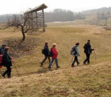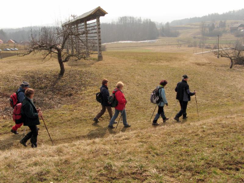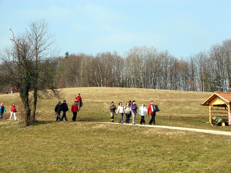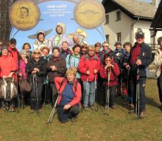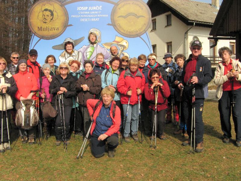 Zamisel o JURČIČEVI POTI, ki bi planince popeljala po deželi Desetega brata, po območjih, ki jih je opisoval v svojih delih, se je porodila v glavi naše vodnice Ruže Tekavec, ob l50-letnici rojstva pisatelja, časnikarja, prvega romanopisca JOSIPA JURČIČA, ob 100-letnici slovenske planinske organizacije ter 20-letnici Planinskega društva VIHARNIK, v katerem je opravljala funkcije podpredsednice društva, načelnice vodniškega /izletniškega/ odseka in prostovoljno planinsko vodništvo. Do uresničitve zamisli seveda ne bi prišlo brez podpore planincev iz PD Grosuplje, Tatjane in Jerneja LAMPRETA z Muljave ter številnih drugih prostovoljcev in donatorjev, ki so »krivi«, da so to pot naši in tuji planinci vzljubili in ji ostali zvesti zaradi neverjetnih lepot krajev in gostoljubnih domačinov. Letos sta nas Tone, ki je tudi zaslužen za to, da imamo planinci to pot in Ruža popeljala po poteh, kjer je pisatelj pohajal kot otrok in kot odrasel mož, ko je napisal delo Jurij Kozjak, slovenski janičar idr. dela. Da bi se izognili gnečam pohodnikov, ki smo jih videli iz avtobusa med vožnjo mimo Višnje gore, je bil tokrat naš start v vasi KRKA, pred znamenito božjepotno cerkvijo, info točko in staro osnovno šolo, v katero je hodil pisatelj in je bila ustanovljena za časa Marije Terezije leta 1770. Pot nas je med polji popeljala do prelepega izvira reke Poltarice, kjer je bila nedavno odkrita jama, podobna znameniti jami ob izviru reke Krke, kjer so nam tudi letos omogočili brezplačen ogled jame. Za kratek počitek in jutranje napitke smo se ustavili na bližnji turistični kmetiji Podržajevih v zaselku GRADIČEK. Pot nas je nato vodila na Velike in MaleVRHE, od koder smo imeli meglene razglede proti Gorjancem, Kumu, gričem nad Ivančno Gorico, po Muljavski dolini, proti visokim vrhovom nad povirjem in dolino reke Krke. S strnjeno gručo pohodnikov smo se srečali šele na delu poti, ki pelje čez Roje (prizorišče pisateljeve povesti Grad Rojinje). Tu smo vstopili v osrčje krajev, od koder je Jurčič črpal snov in junake za svoje zgodbe. Spustili smo se po gozdni poti na območje Kravjeka, prehodili pot mimo ribnika Laškovec, kjer je prvotno tekla trasa in se za hip ustavili na pokopališču okrog cerkve sv. Janeza Krstnika, zaradi znamenitosti groba viteza Foedransberga, nekoč gospodarja gradu Weineck - Jurčičevih Slemenic iz Desetega brata. Tu so snemali film po istoimenskem romanu in filmsko pokopali Martinka Spaka, Desetega brata. Pot smo nadaljevali čez Oslico do Muljave, do Jurčičeve domačije in gledališča na prostem, kjer se je odvijal kulturni program. Ogledali smo si razstavo akvarelov naše članice Marije Tratar, predsednica Kulturnega društva Muljava, Tatjana Lampret, ki je kulturni program tudi pripravila, pa nas je pogostila s krofi in povabila na predstavo DOMEN, ki jo režira in pripravlja za letošnje poletje. Z Muljave smo nadaljevali hojo čez prijazne zaselke Potok pri Muljavi, Znojile in Trebnja gorica do izvira Krke in Krške jame. Nekaj pohodnic si je jamo ogledalo, vsi pa smo si privoščili daljši počitek za malico v turistični kmetiji na Gradičku. Od tu smo se podali še na ogled Jurčičeve osnovne šole, v kateri vsakokrat pohodnikom omogočijo ogled lepo urejene turistične razstave. Tu nas je prijazno sprejela in pogostila predsednica Turističnega društva Krka, Nataša LUKMAN, ki se je skupaj s šolarji in predstavniki Čebelarskega društva potrudila, da smo imeli kaj videti in slišati. Naš izlet smo sklenili v vasi Krka. Na poti proti domu smo se za hip še enkrat ustavili na Muljavi, in sicer za ogled zlatega oltarja in fresk J. Ljubljanskega v baročni cerkvi Marijinega vnebovzetja iz prve polovice 15. stol.