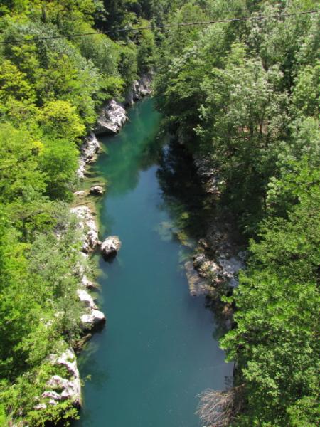 Čez most vodi cesta v vas, a mi nadaljujemo po levem bregu reke do hotela Zlata ribica, reka vabi k postanku.