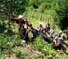 Začeli smo z ogledom spomenika avstroogrskim vojakom na vojaškem pokopališču iz časa 1. svetovne vojne. Povzpeli smo se na vrh Gradišča, s katerega je razgled na celotno okolico. Po krajšem počitku na vrhu in okrepčilu smo občudovali različno cvetje, ki ga je bilo obilo, največ znanja o cvetlicah je pokazala Stanka iz skupine brežiških Torkarjev. Na gradišču je še vidno obširno obzidje iz časov turških vpadov v naše kraje.