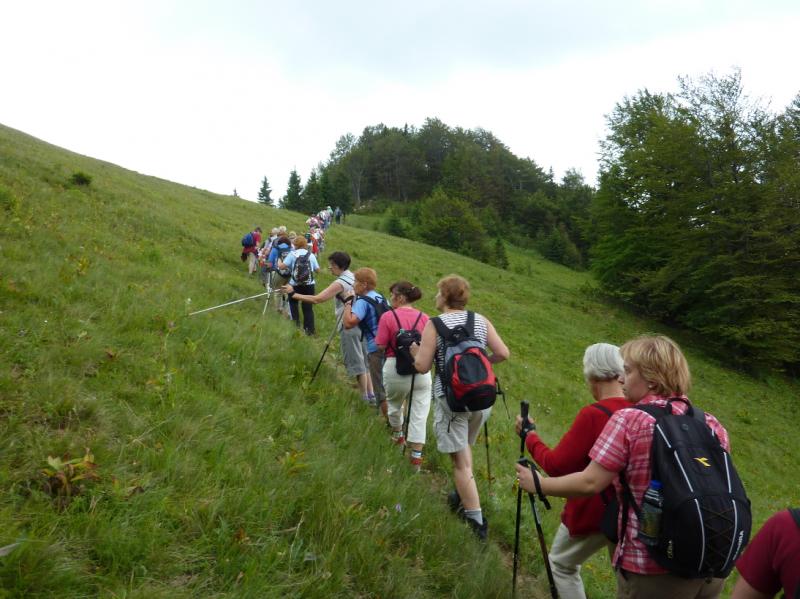 Po uvodnem pozdravu in kratkem kulturnem programu, smo se pod vodstvom domačina dr. Jožeta Bavcona (direktorja Botaničnega vrta v Ljubljani) podali na pot. Da je pot laže stekla, so z dobrodošlico poskrbele novaške gospodinje. Z vrha 1360 m visoke Kope so se ponujali čudoviti razgledi po bližnji in daljni okolici, pot pa je bila bogata z raznovrstnim rastlinjem in cvetjem, ki smo ga pod vodstvom botanika podrobneje spoznali. Nekaj pa nas je odšlo iz Vrš še naprej do vrha Porezna. Knjižica "60 vrhov za 60 let" se že polni!