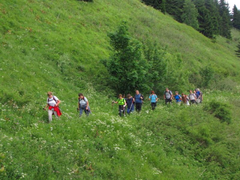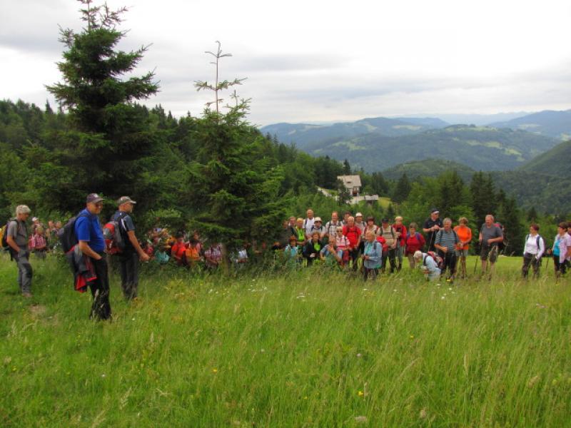 Ob spustu z vrha smo fotografirali posamezno cvetje in nabirali arniko. Pri brunarici smo imeli možnost poskusiti joto ali zelje po njihovo, ocvirkovco in čevapčiče. No, pa adijo spomladanska torilnica, alpski glavinec, kratkodlakava popkoresa, kraljica gora, crepis slovenica, rumena preobjeda, šmarnica, dišeči koromač, razne lilije, divji lan. Nekatere so se že precej izgubile, nekatera kot jelenovec, pa so znak za zaraščanje.